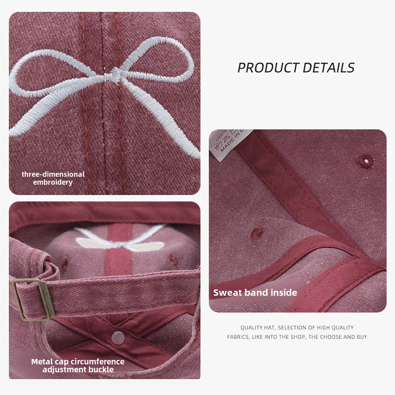 | nameOriginal | Japanese Korean style hat women's bow embroidered peaked cap spring and summer vintage washed stick all-match face-looking small baseball cap |