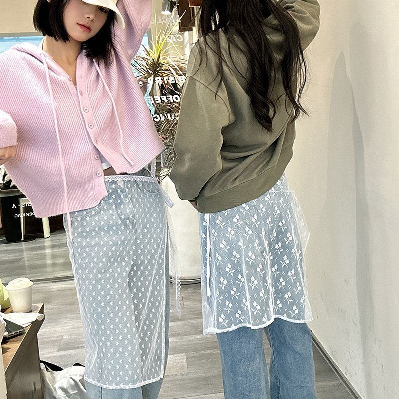 Japanese lace polka dot skirt spring new one piece gauze skirt white design lace apron fart curtain cover skirt