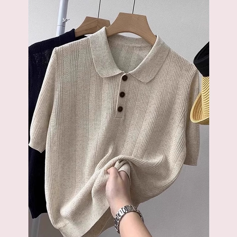 | nameOriginal | Japanese lapel chic textured ice silk short-sleeved T-shirt |