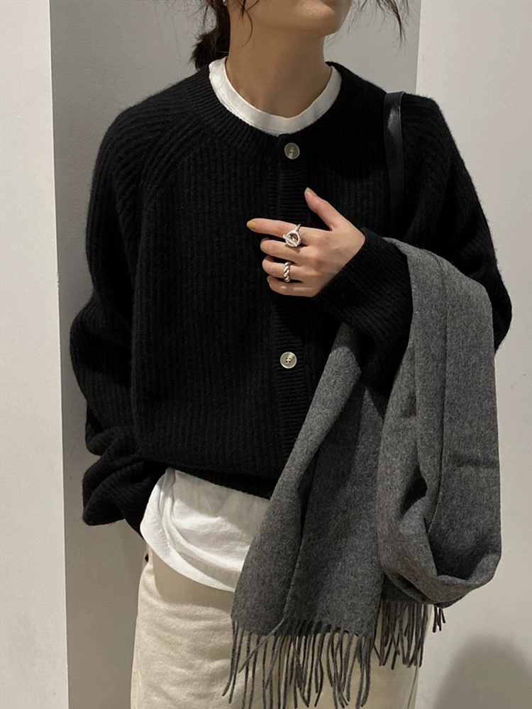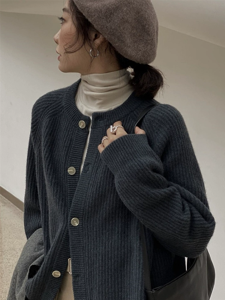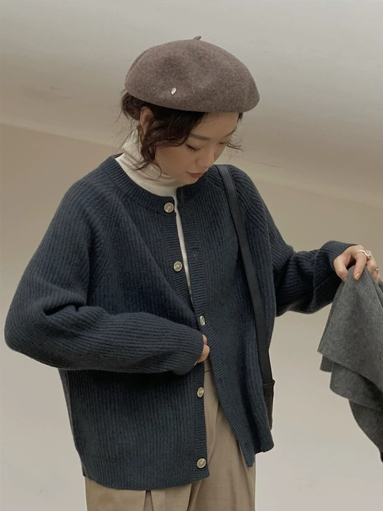 Japanese lazy retro knitted cardigan women's autumn and winter new soft waxy style sweater jacket loose slimming round neck top