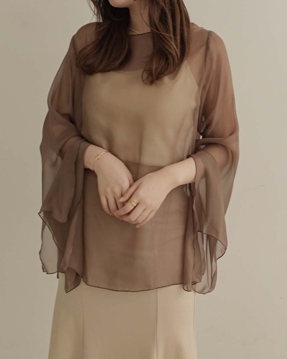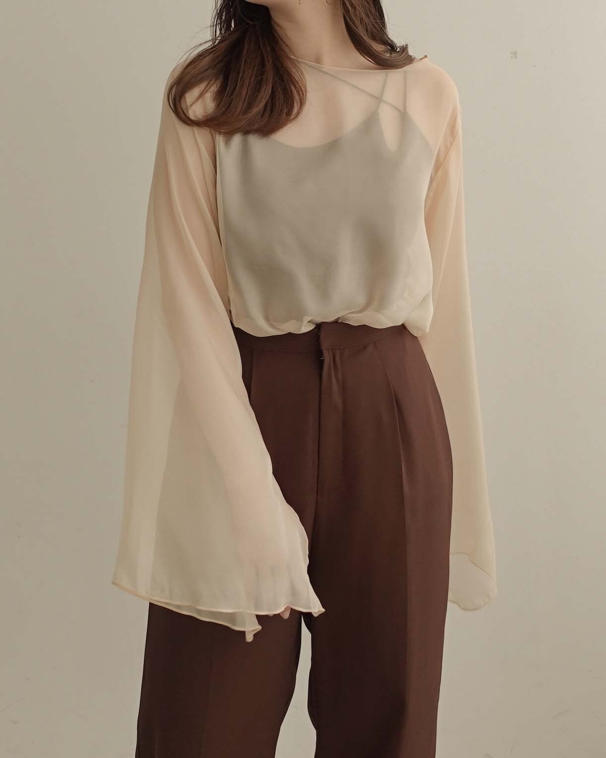 | nameOriginal | Japanese light color women's slit cuffs tulle blouse |