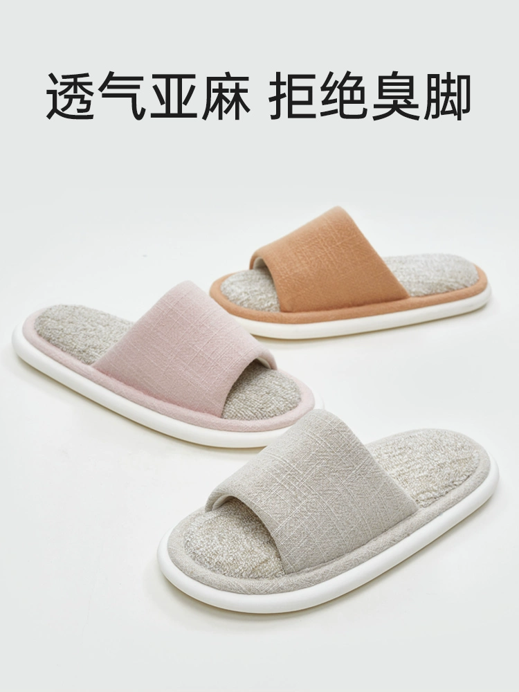 Japanese -style linseed slippers Female summer four seasons home indoor couples, non -slip cotton cotton, linen, sweat, spring and autumn fabrics