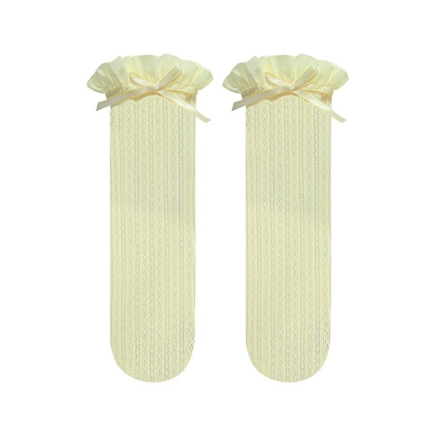 Japanese Lolita JK White Calf Socks Thin Flesh Lace Short Socks Bow Black Mid-Length Socks
