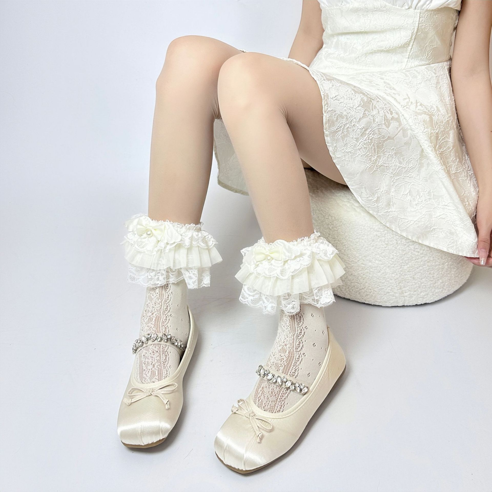 | nameOriginal | Japanese Lolita Lace Calf Socks Jk Bow Socks Pure Sweet Lolita Mid-Length Lace Socks |