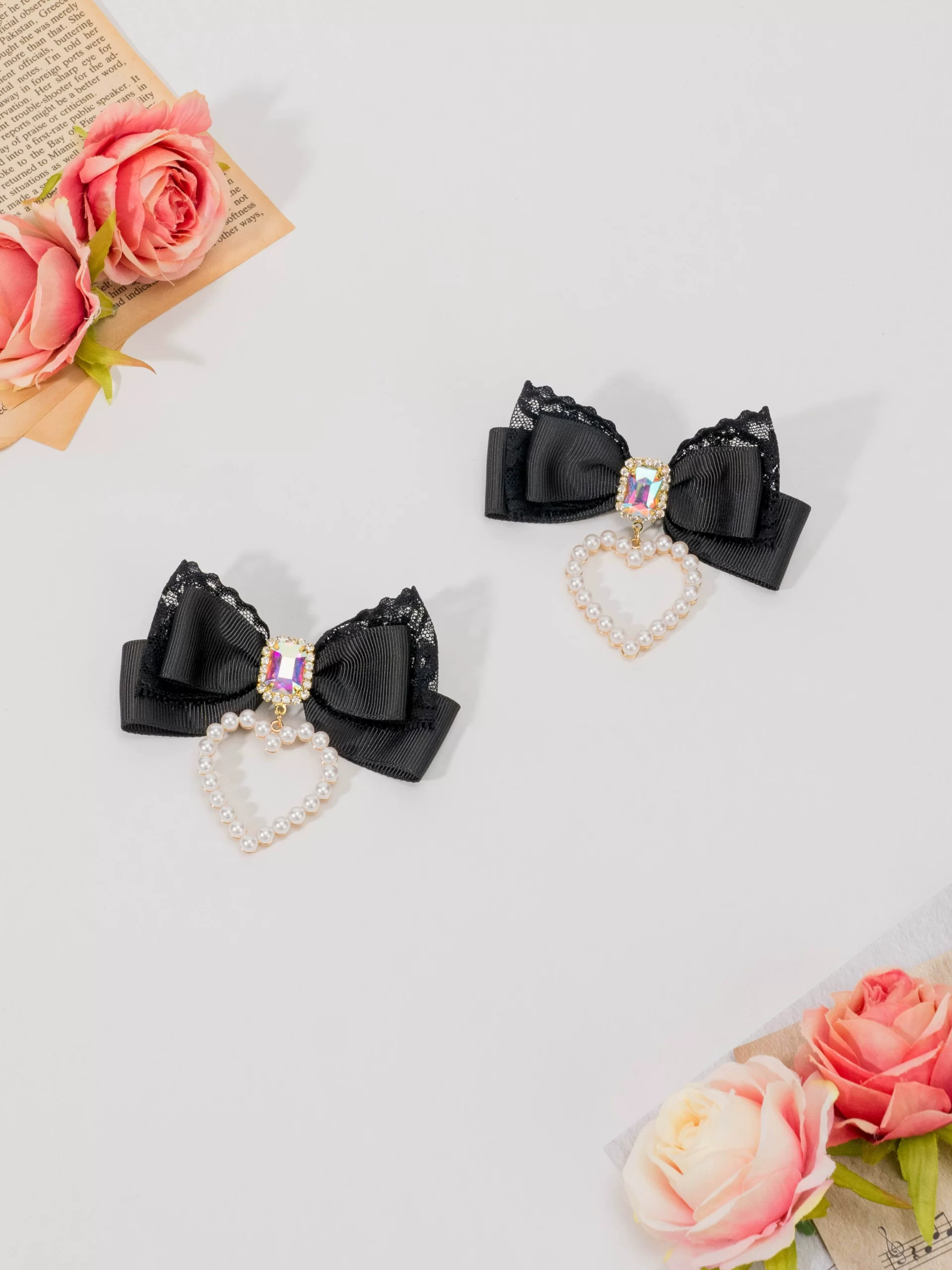Japanese mass-produced pearl love theme lace butterfly pink sweet girl light lo hairpin pair of girl accessories