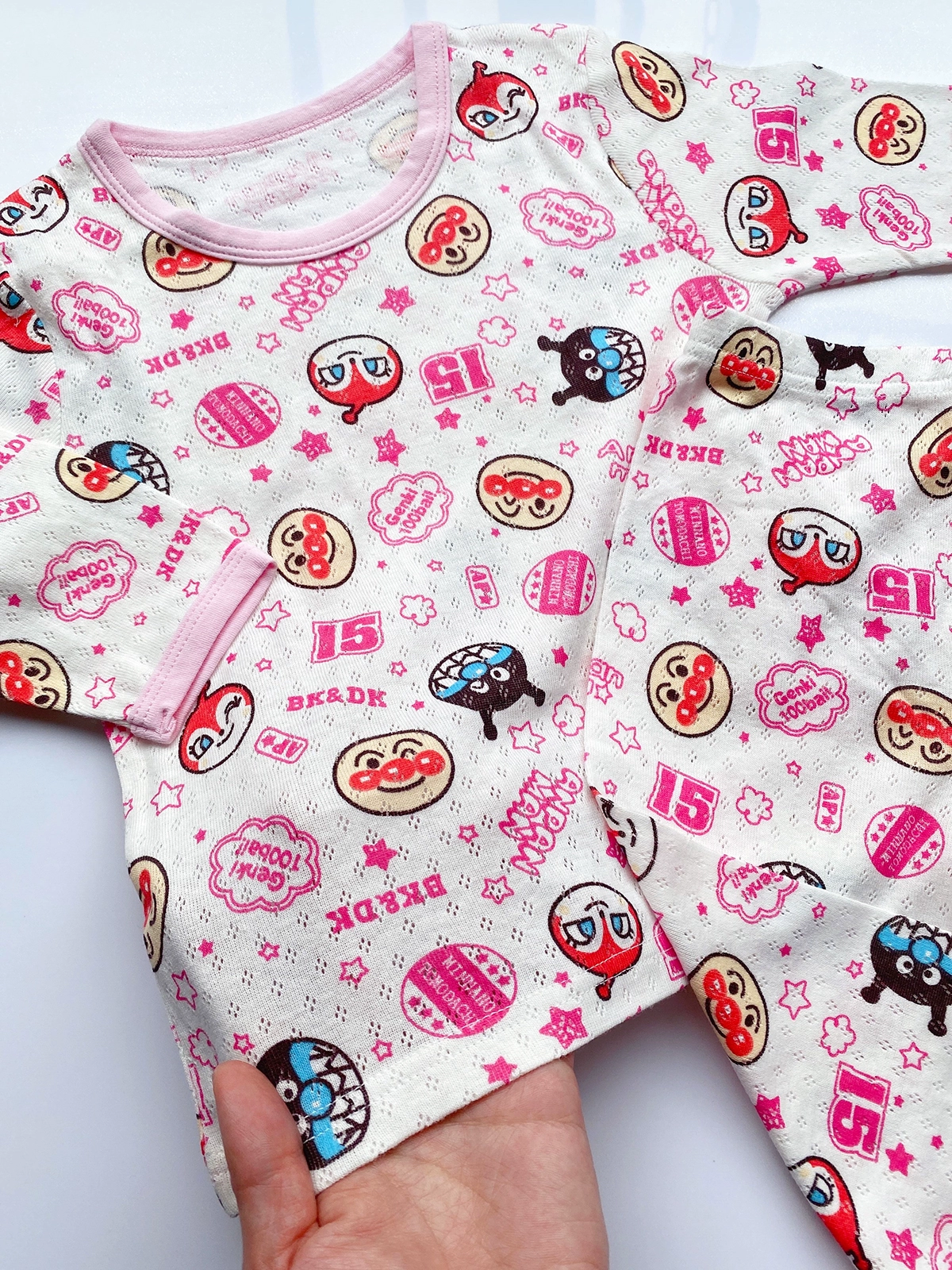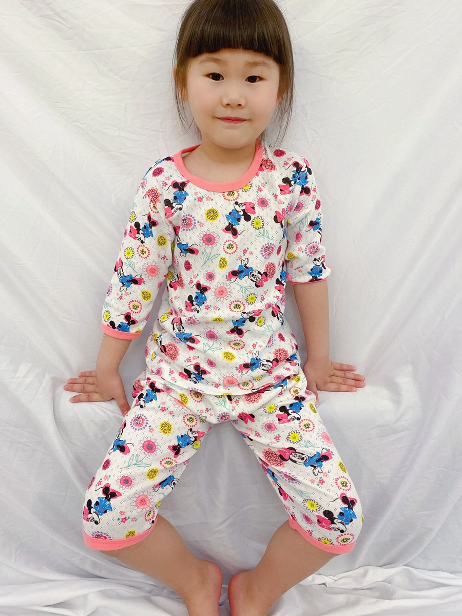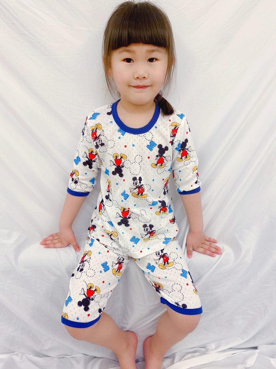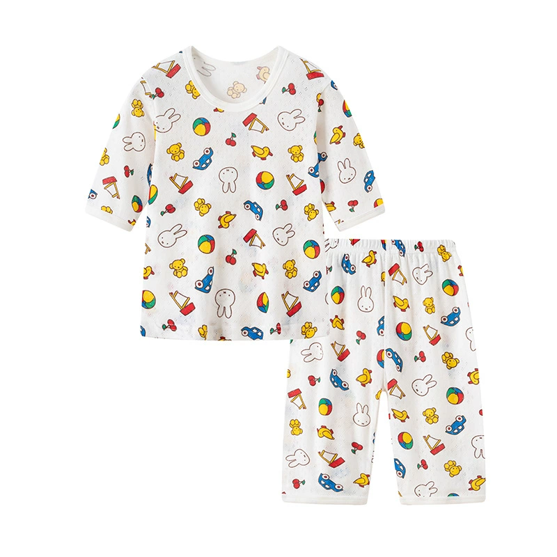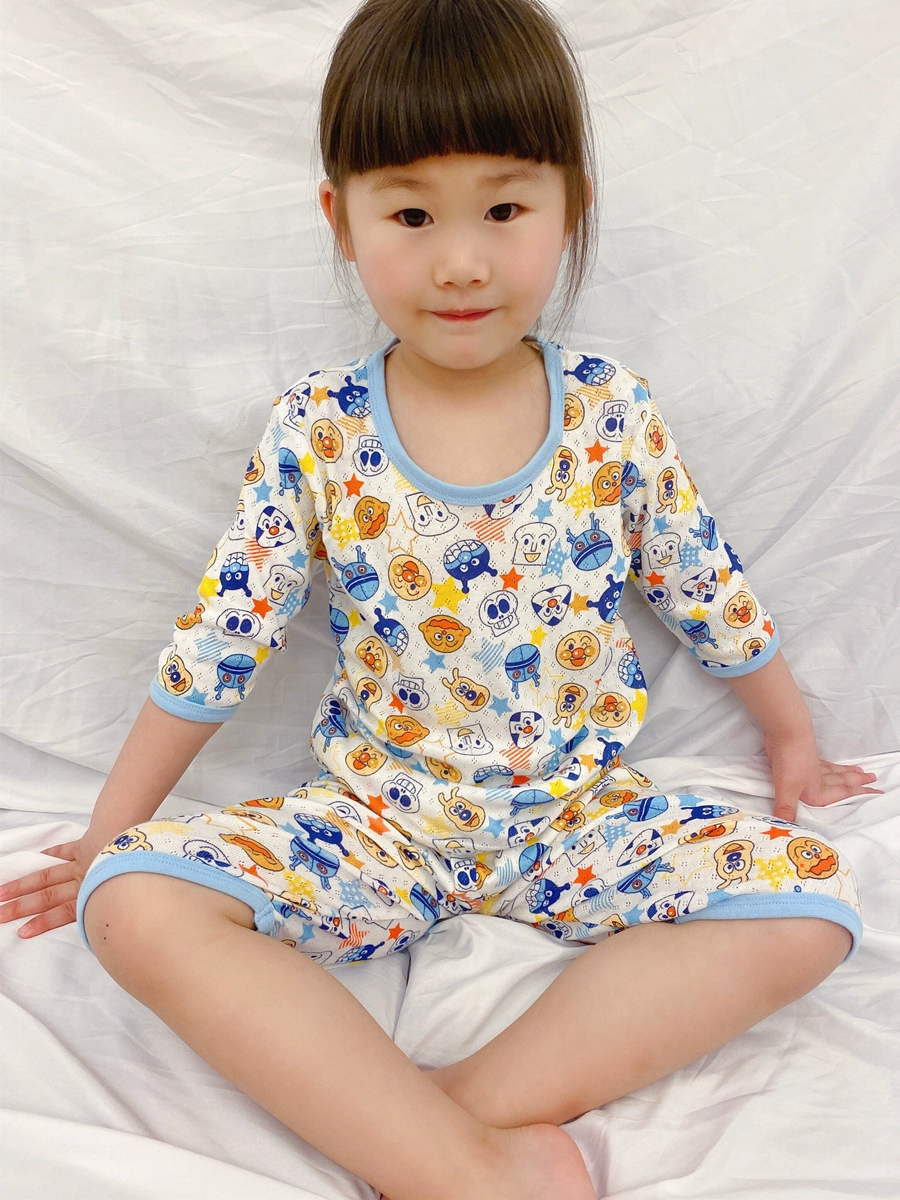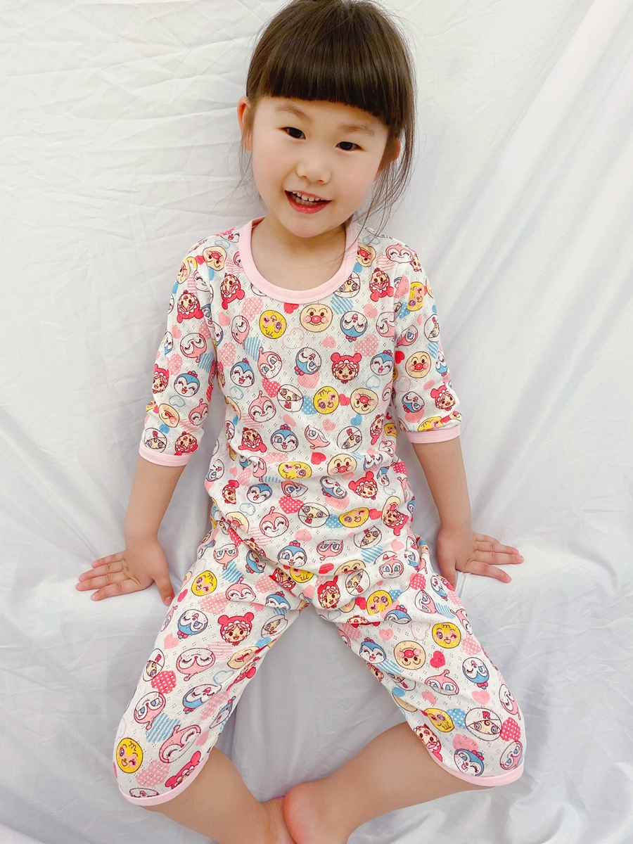 Japanese net eye seven -point sleeve pure cotton baby summer thin model