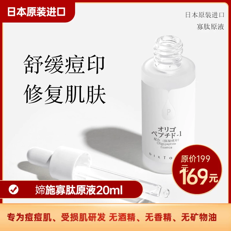 | nameOriginal | Japanese oligopeptide essence removes acne and light marks, improves acne pits, and repairs acne-prone skin after staying up late |