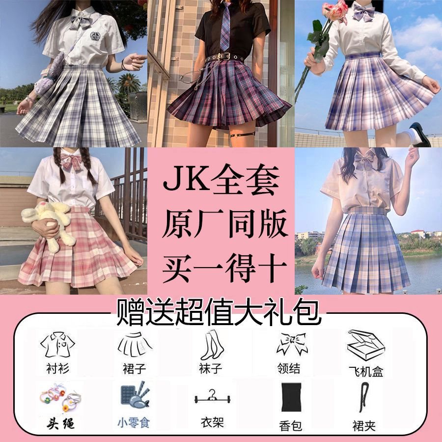 Japanese Orthodox Full JK Uniform Student School Uniform Pleated Skirt Spring and Summer JK Lattice Skirt Women's Sailing Clothes College Style suit