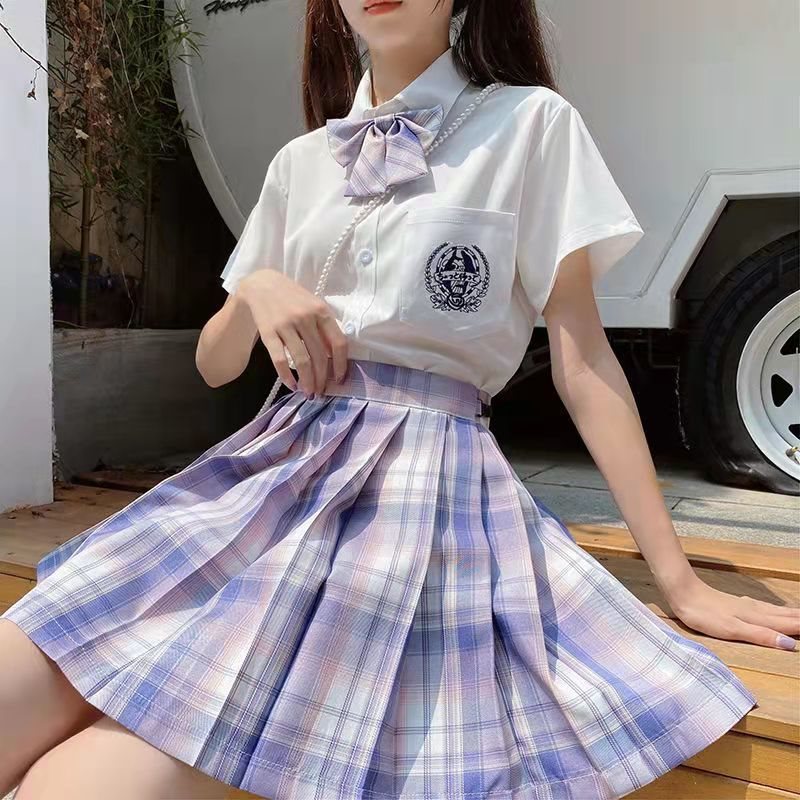 Japanese Orthodox Full JK Uniform Student School Uniform Pleated Skirt Spring and Summer JK Lattice Skirt Women’s Sailing Clothes College Style suit