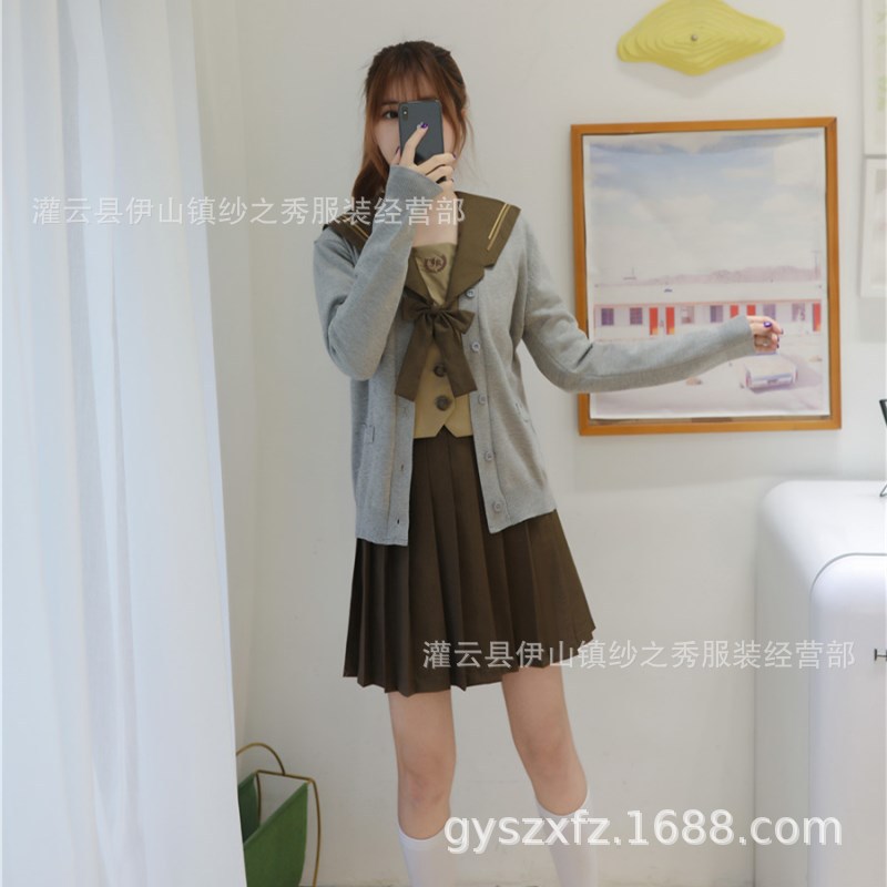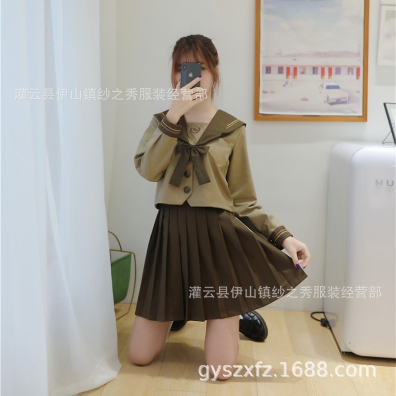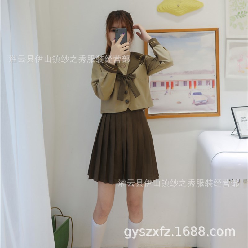 Japanese Orthodox Soft Sister jk Uniform Skirt Milk Tea Brown Kanto Deformed Break Two Sailor Suit Sweater Student Suit