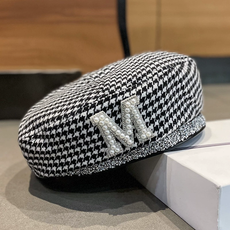 | nameOriginal | Japanese pearl M label autumn and winter beret hat for women, versatile fashionable British retro beret hat trend painter hat |