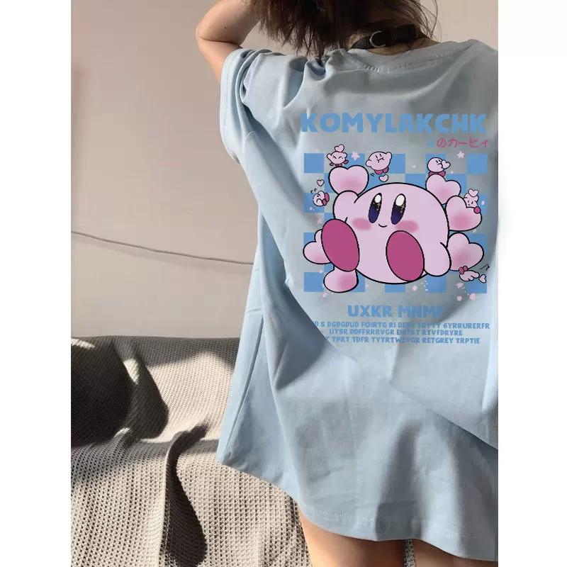 Japanese pink Kirby off-shoulder short-sleeved T-shirt
