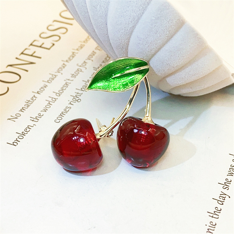 Japanese Red Cherry Brooch Women’s High-end Luxury Elegant 2022 New Fashion Sweater Coat Corsage Pin Accessories