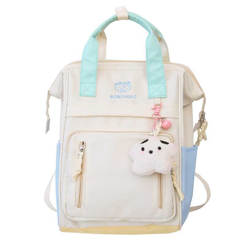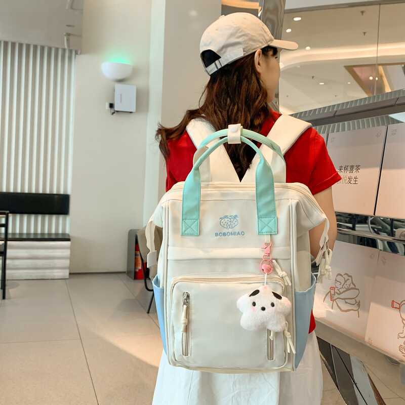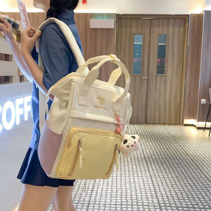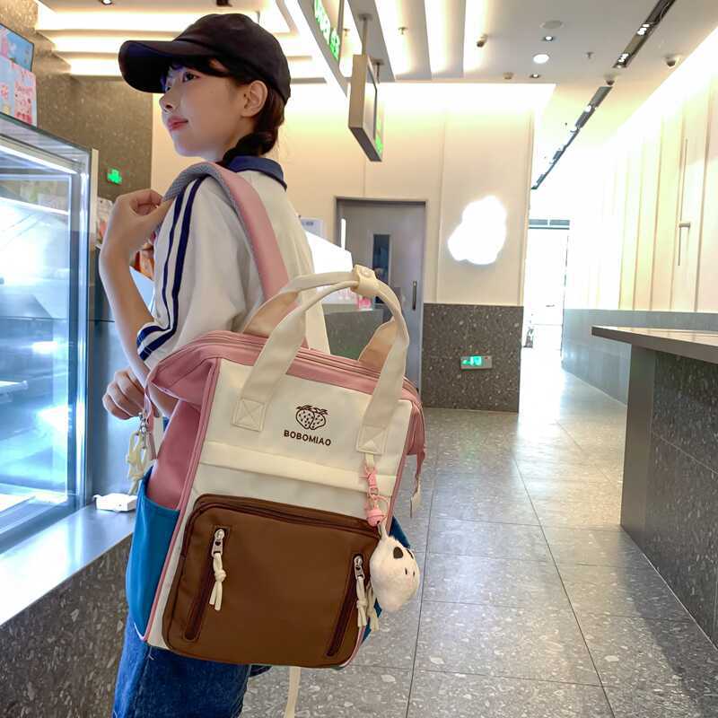 Japanese Retro Contrast Color Portable Backpack Niche Design Fashion All-match Backpack Class Commuter Tutoring Schoolbag