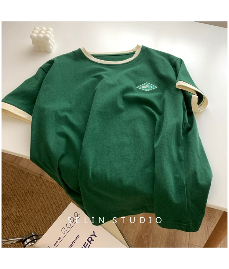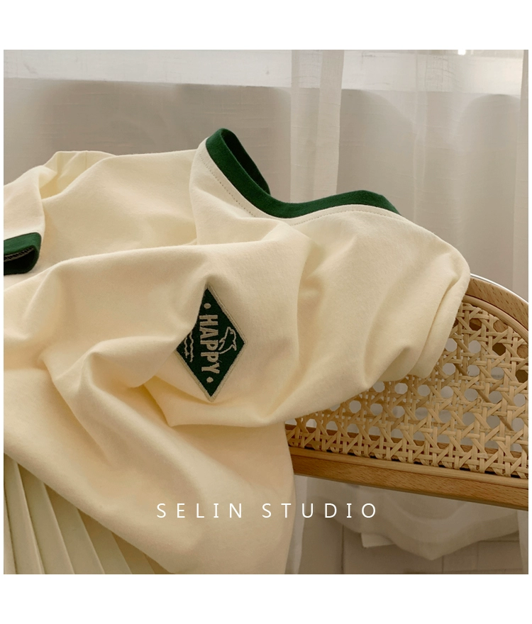 Japanese retro literary college style contrasting basic neckline