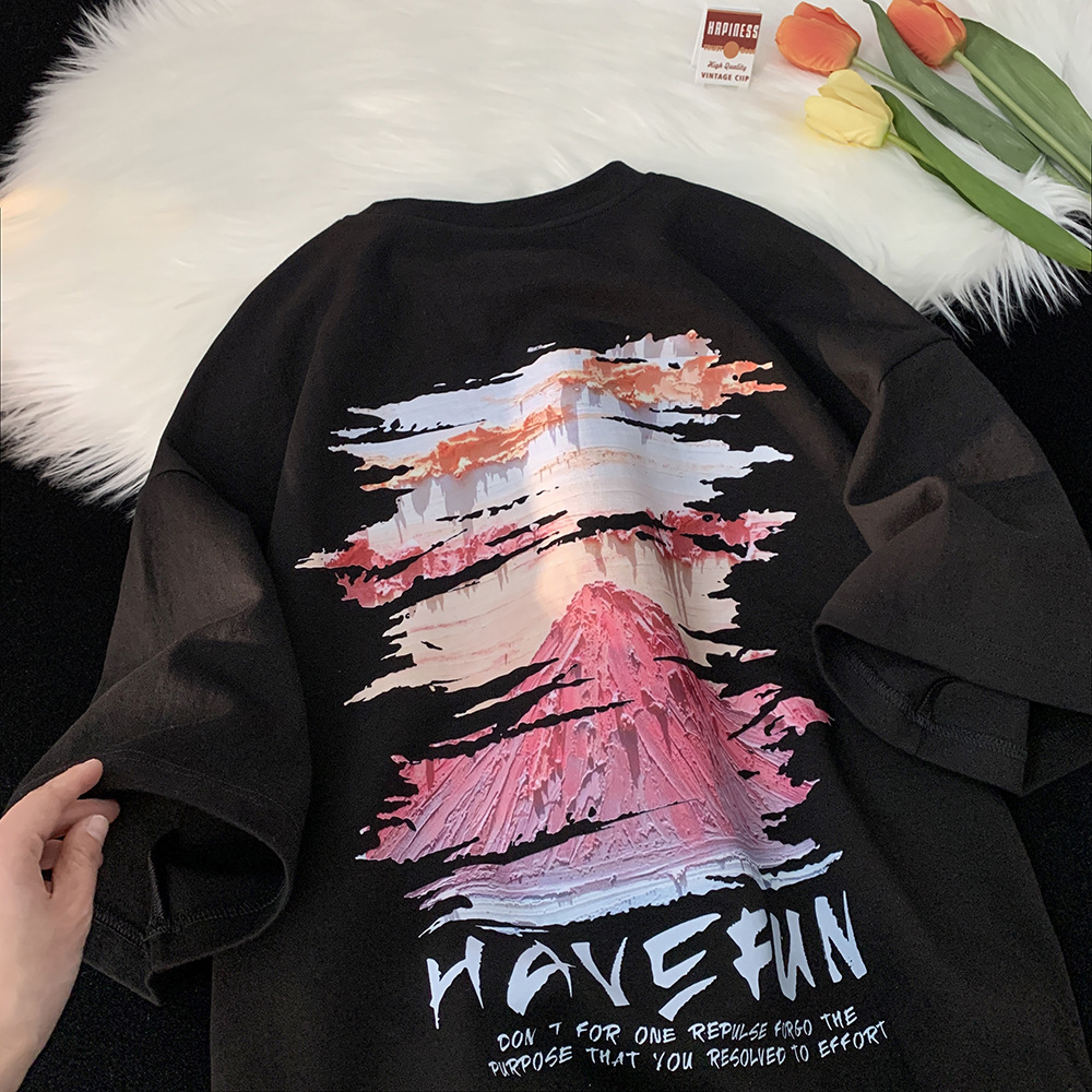 | nameOriginal | Japanese Retro Mount Fuji Short-sleeved T-shirt Men's Fashion Brand Summer Couple Half-sleeved American Heavy 320g T-shirt |