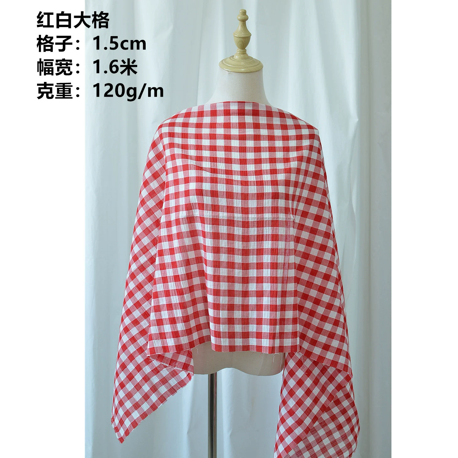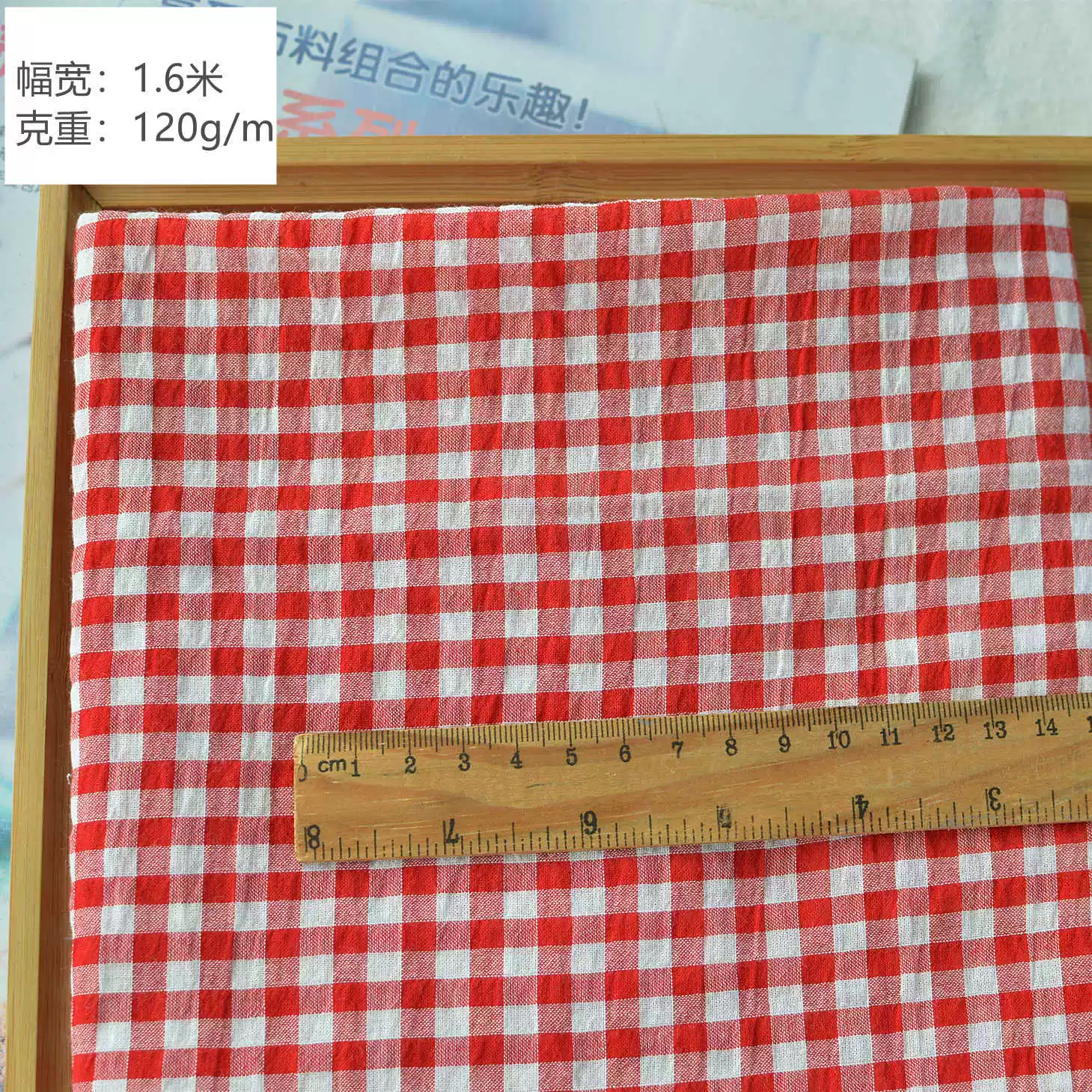 | nameOriginal | Japanese retro red and white checkered wrinkled cotton yarn fabric, summer light handmade DIY skirt, children's anti-mosquito pants, cotton fabric |