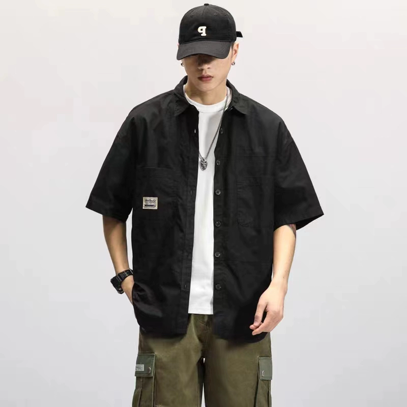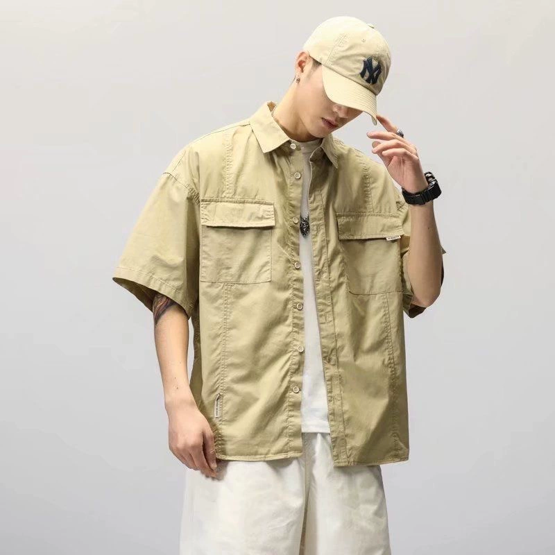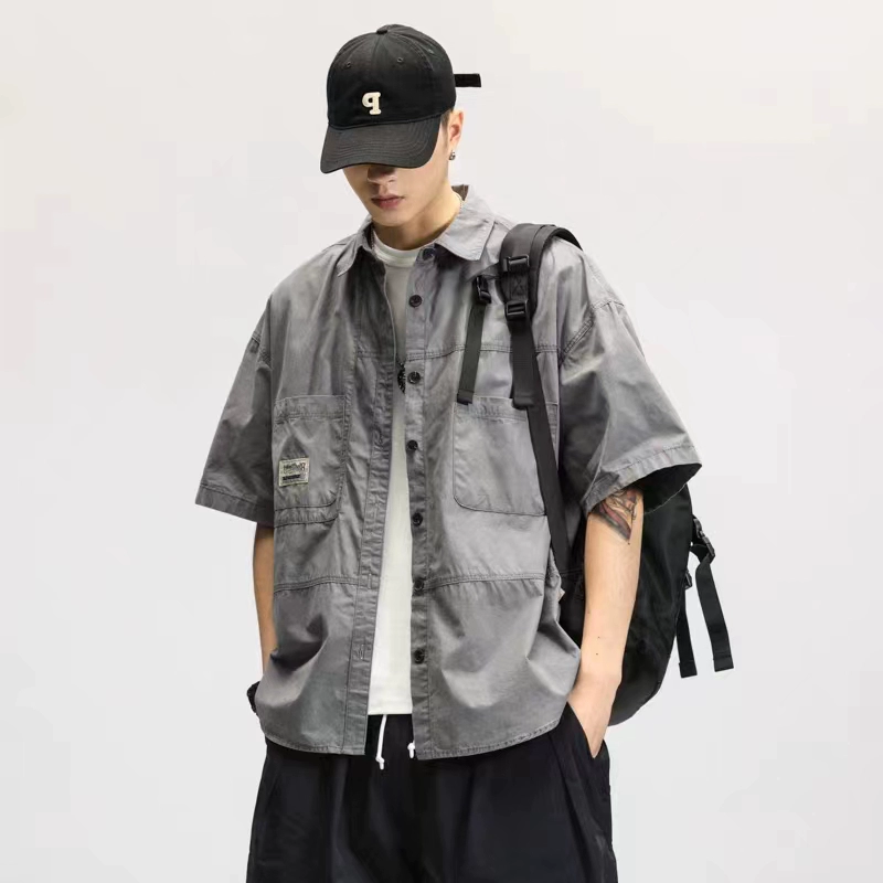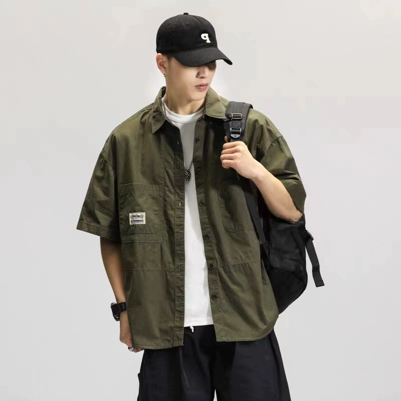 | nameOriginal | Japanese retro workwear pure cotton short-sleeved shirt men's youth summer fat man large size loose casual handsome shirt |
