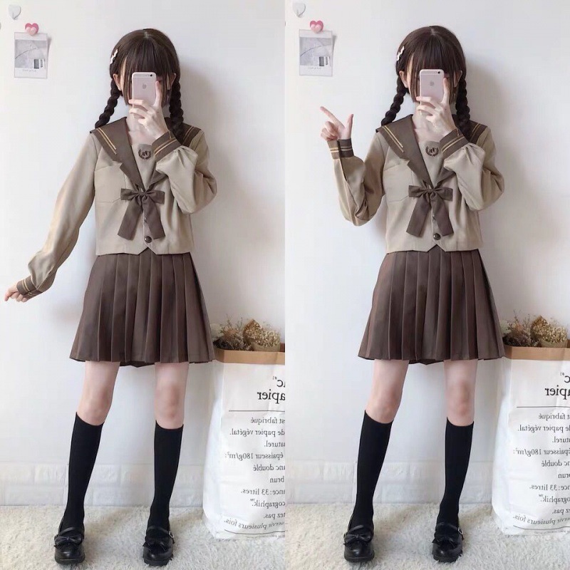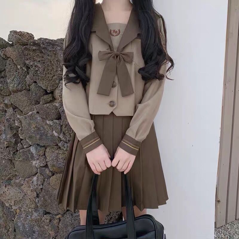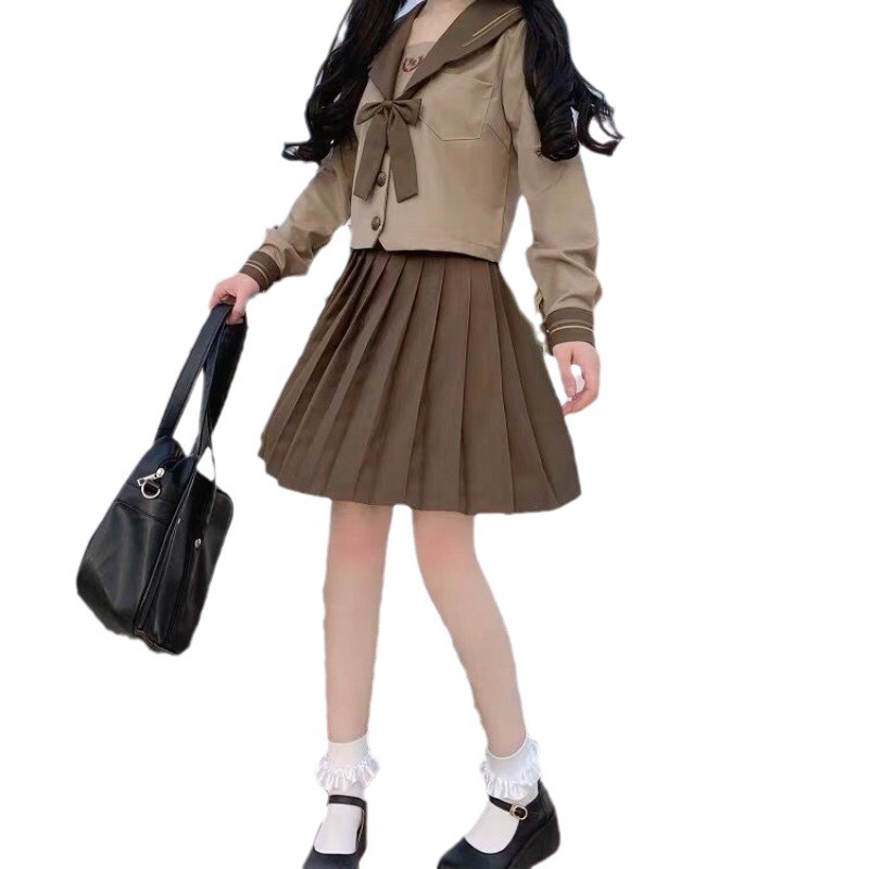 | nameOriginal | Japanese sailor suit milk tea brown JK uniform basic student uniform college style class uniform long sleeve pleated skirt suit |