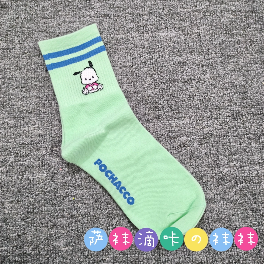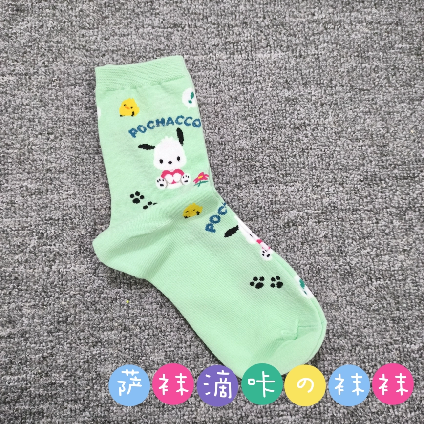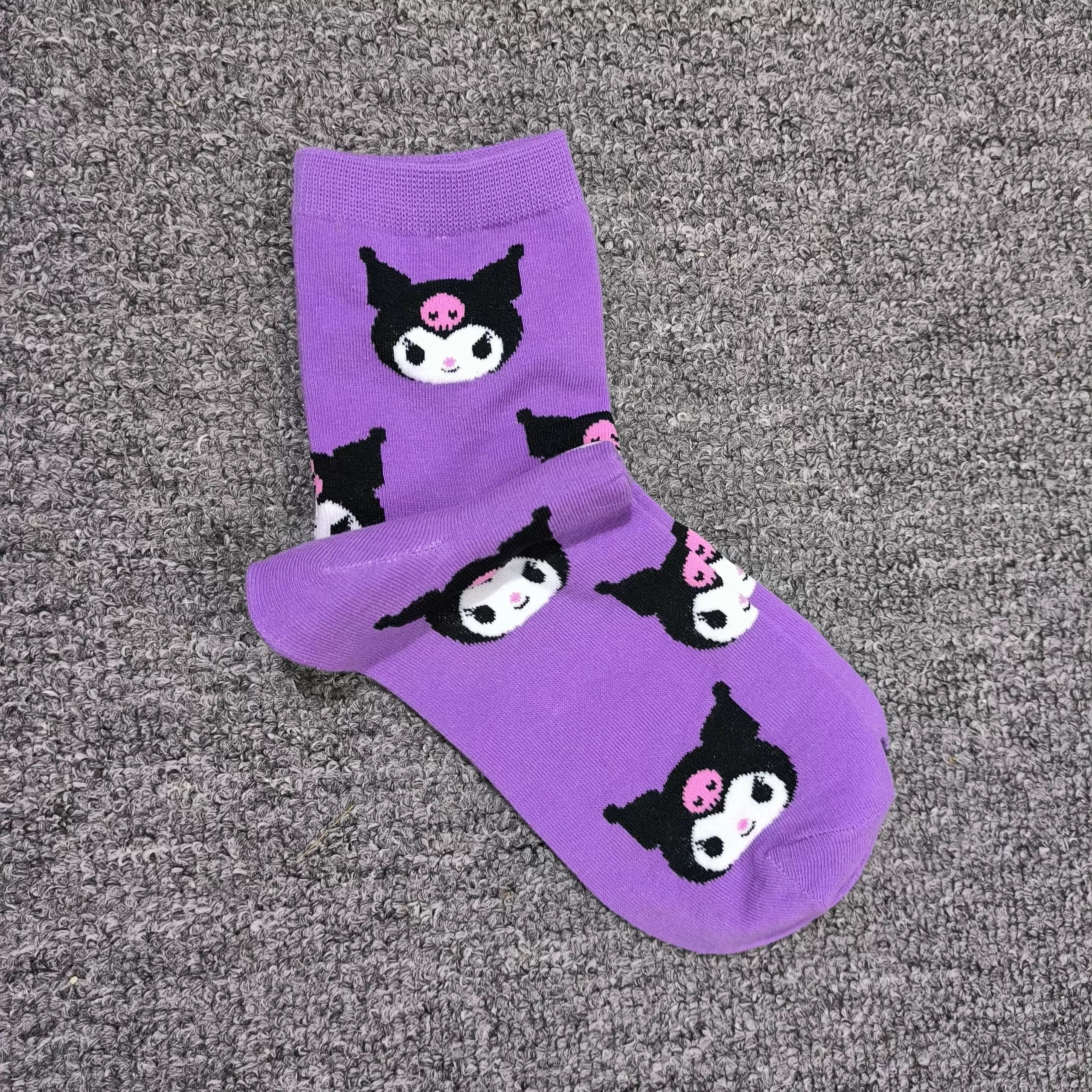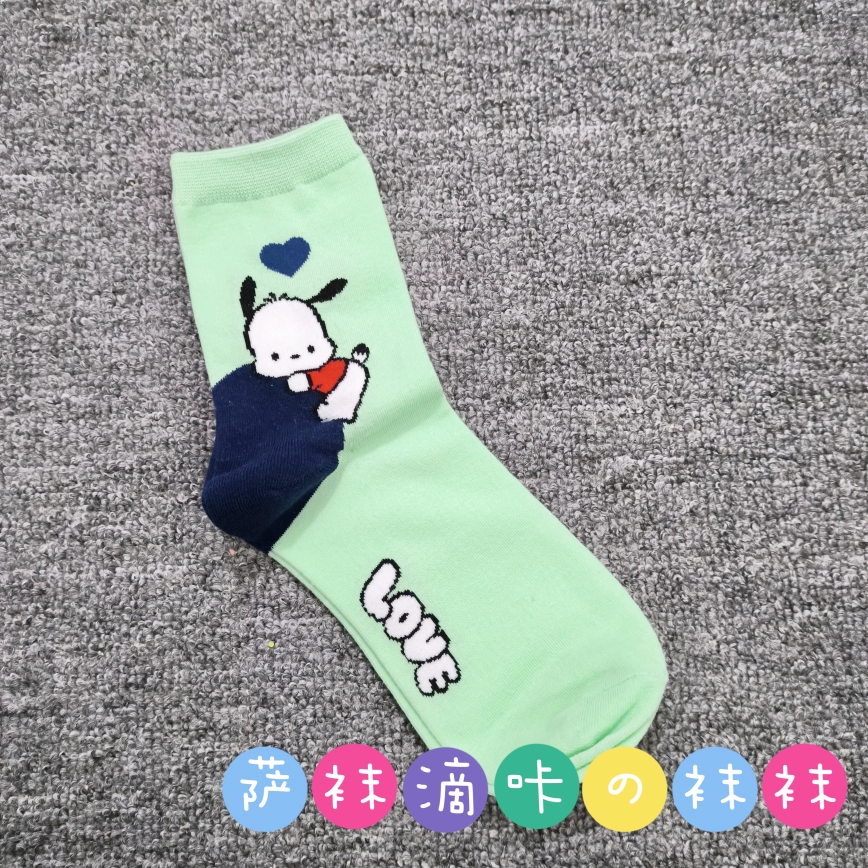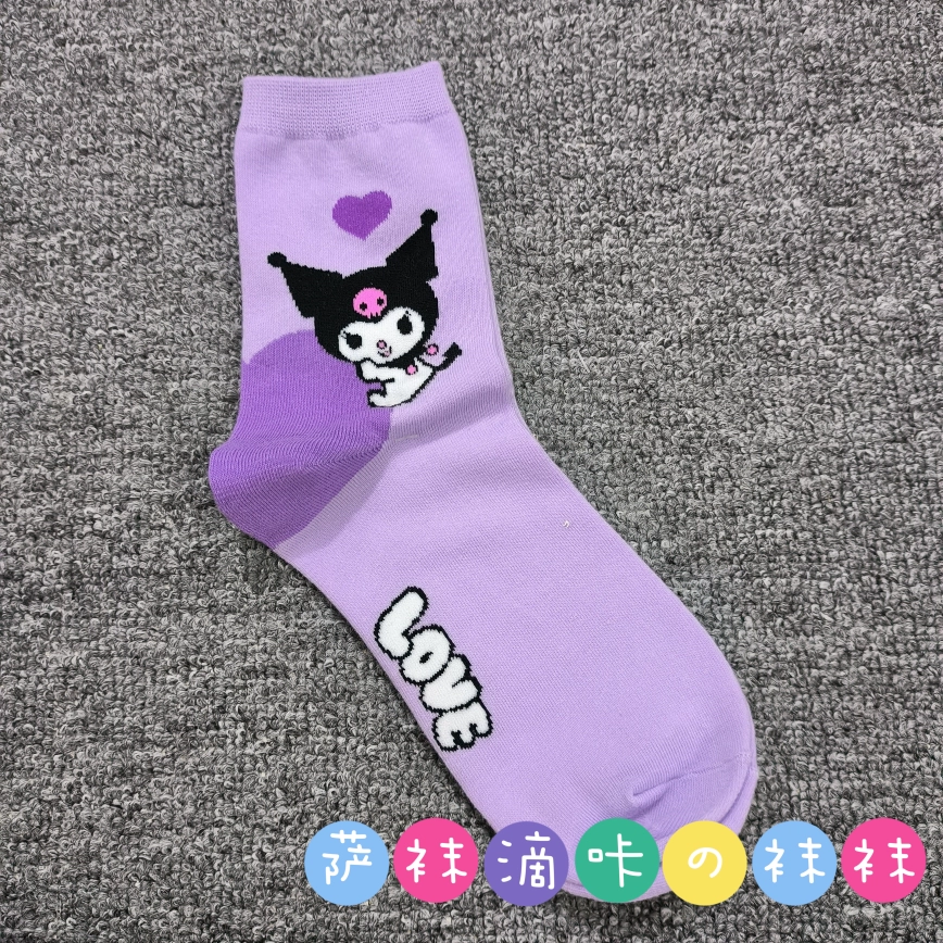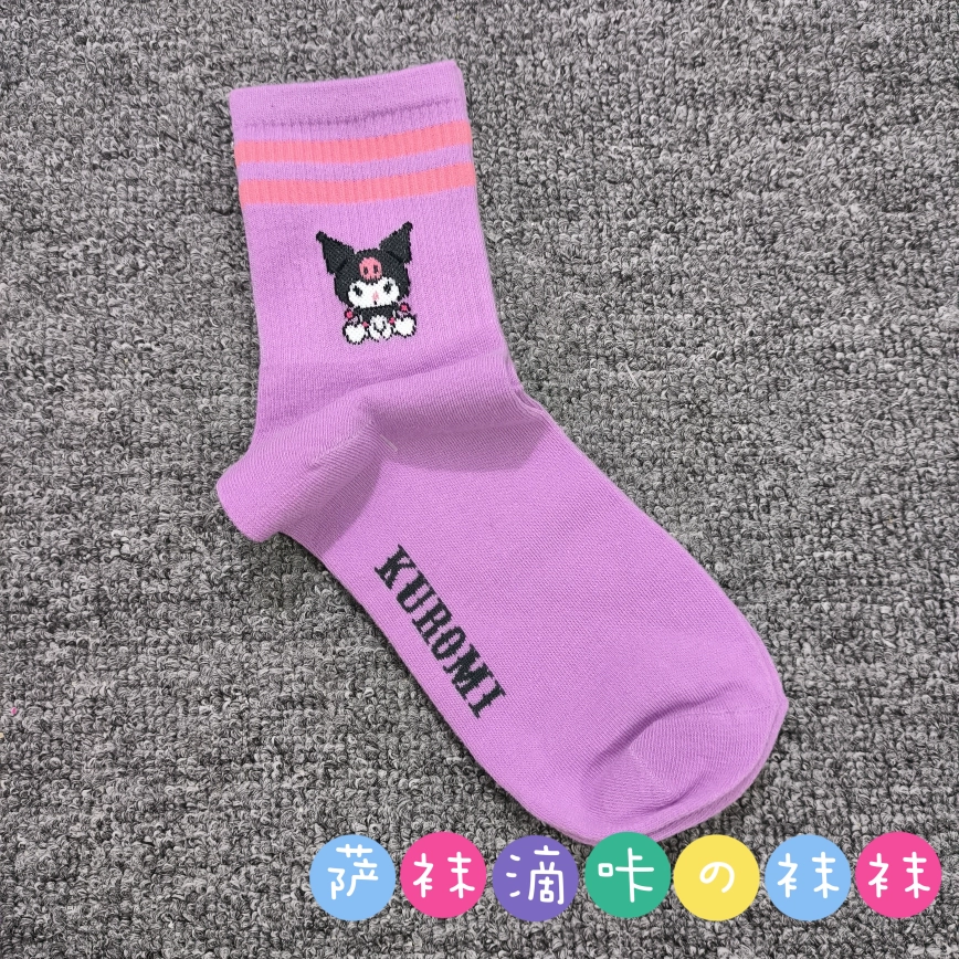 | nameOriginal | Japanese single adult Sanrio cute Pacha Yugui Kuromi color matching women's mid-calf socks cartoon four seasons pure cotton stockings |