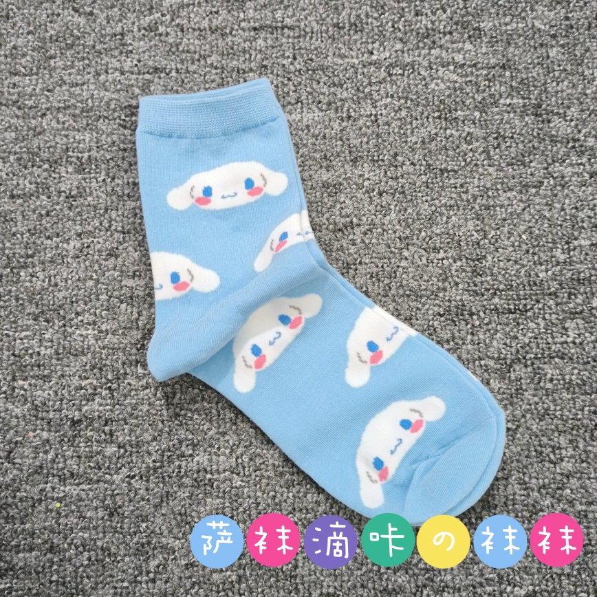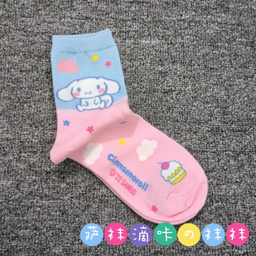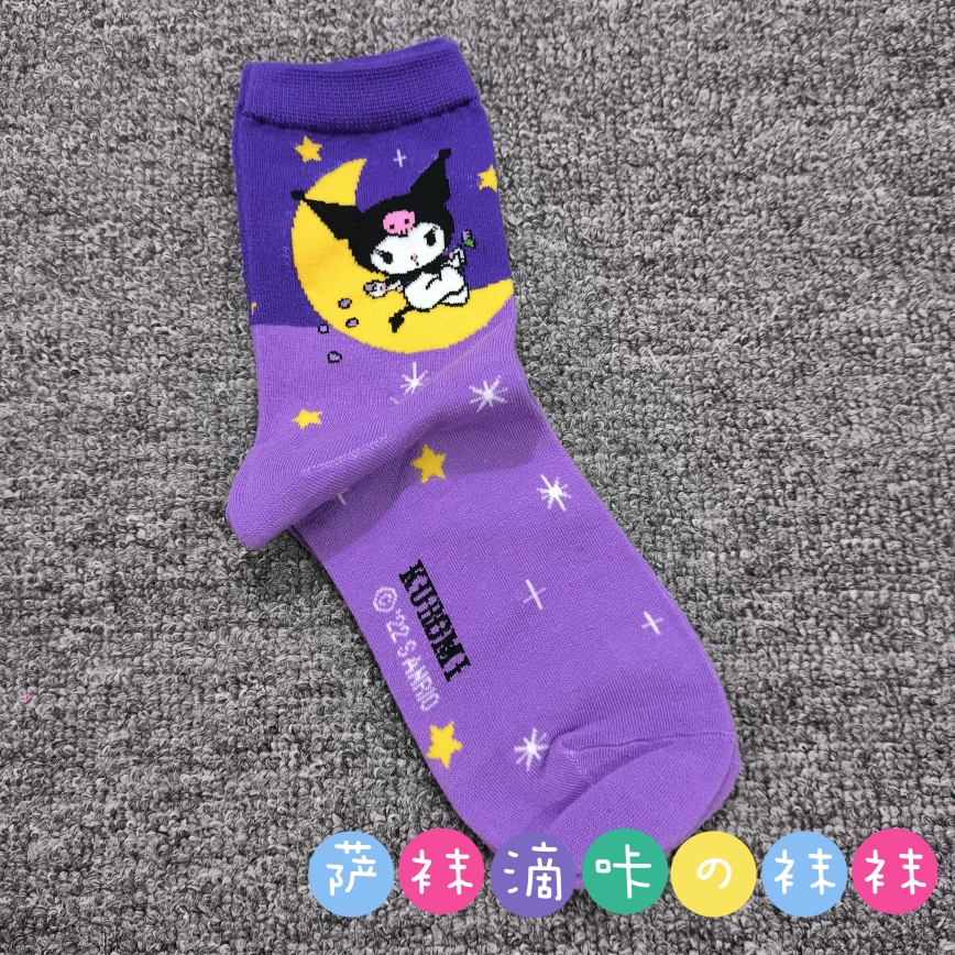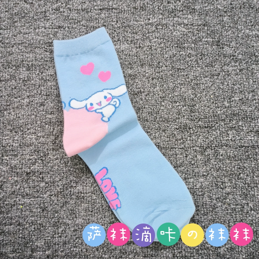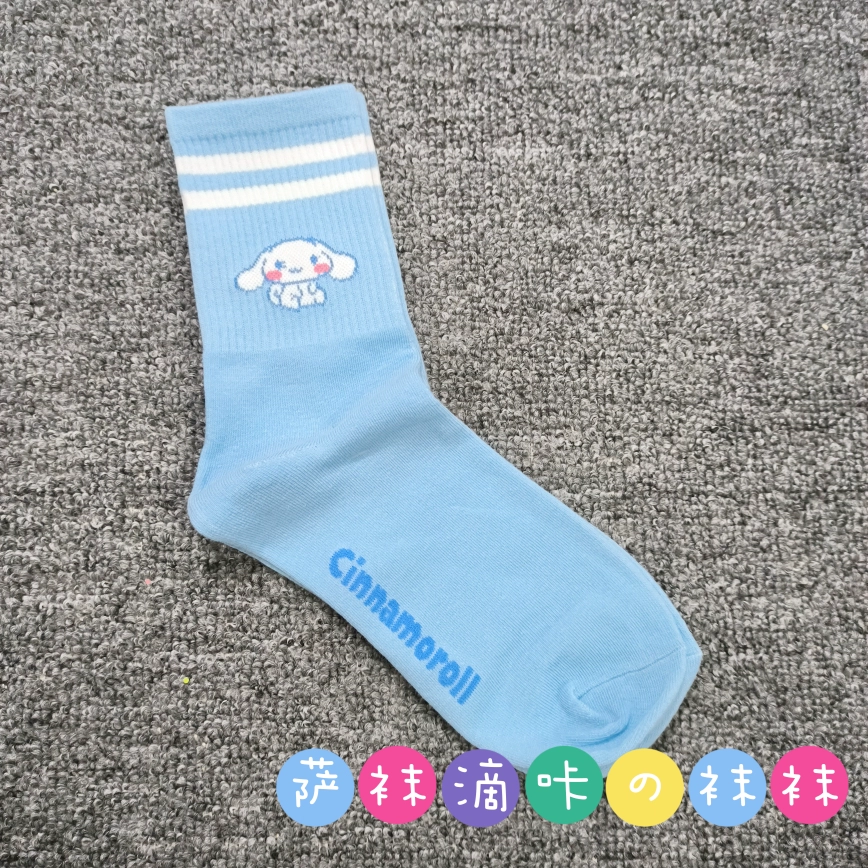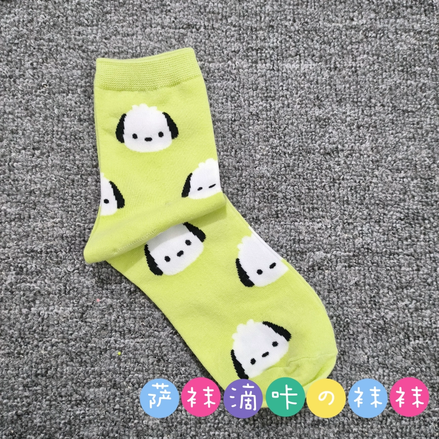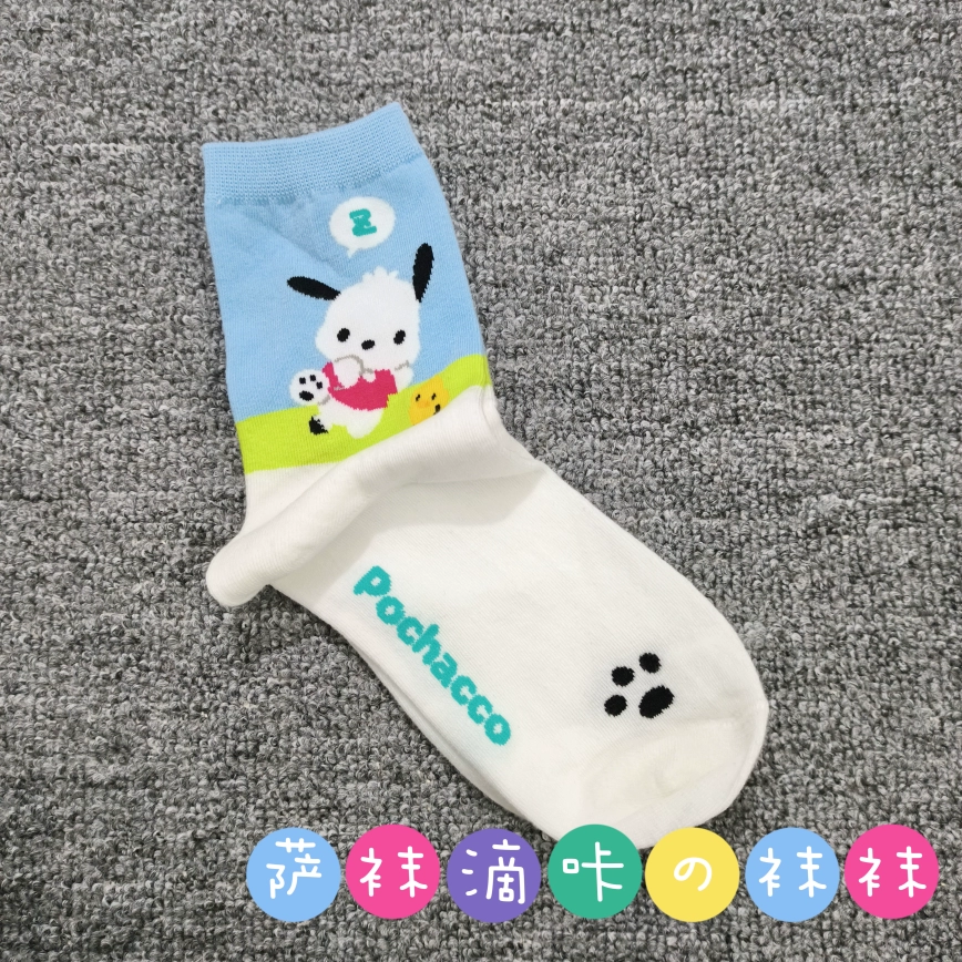 | nameOriginal | Japanese single adult Sanrio cute Pacha Yugui Kuromi color matching women's mid-calf socks cartoon four seasons pure cotton stockings |