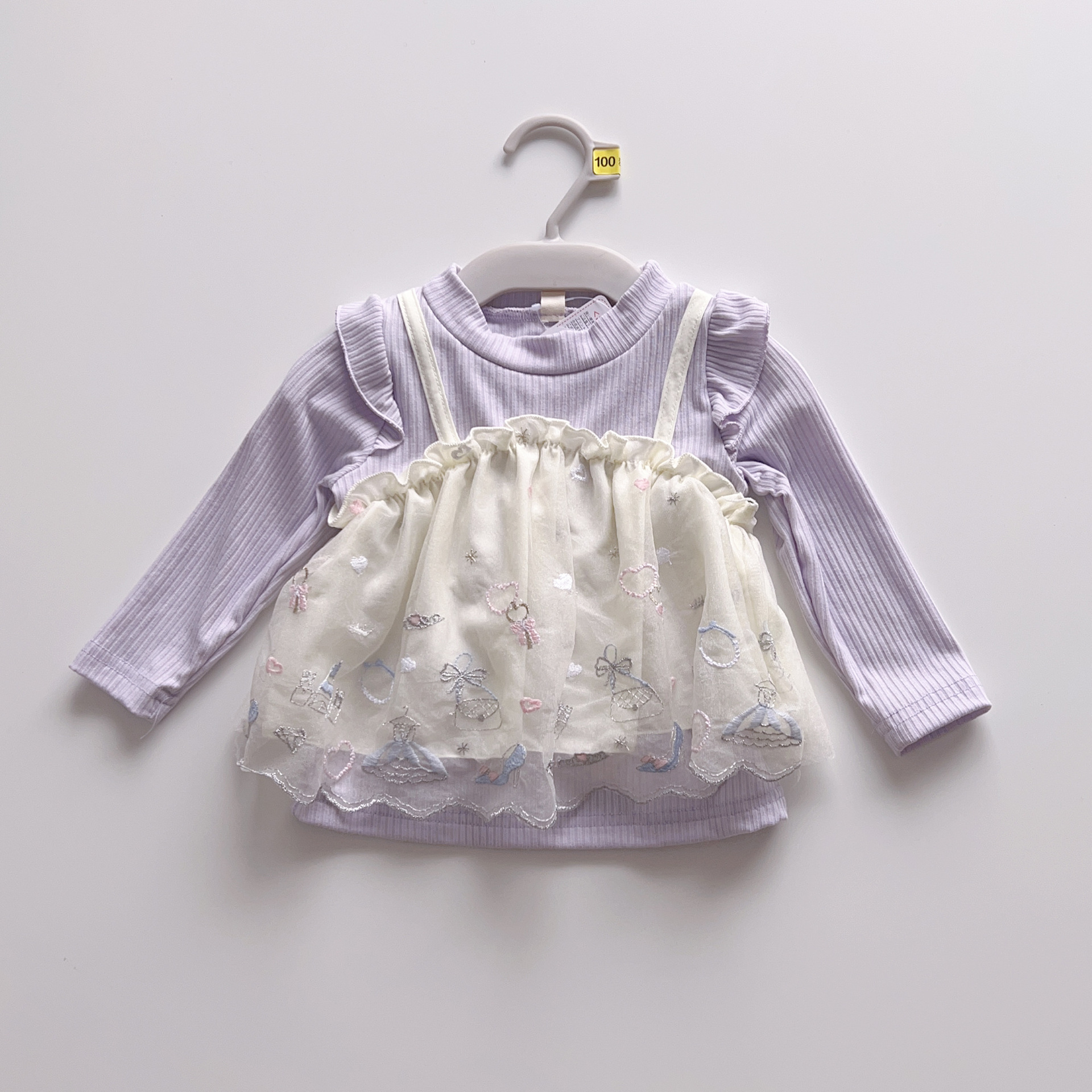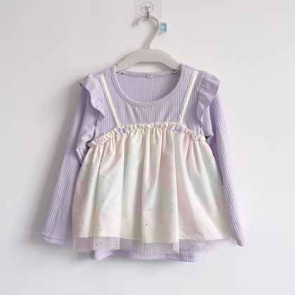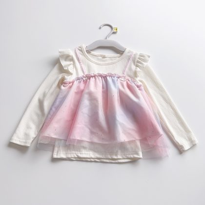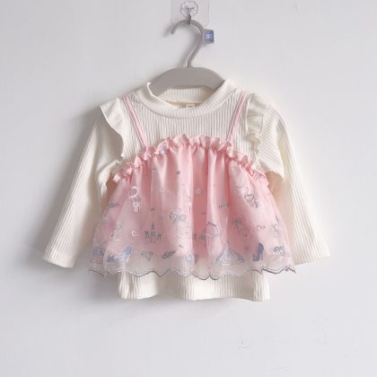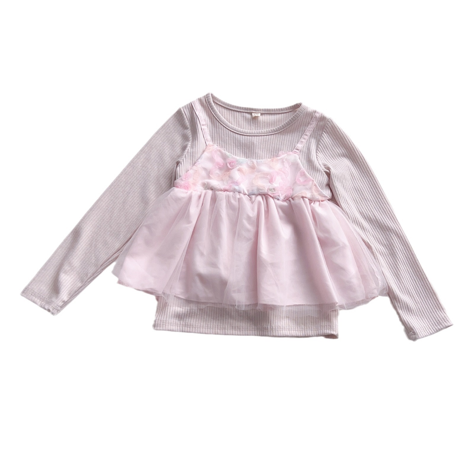 | nameOriginal | Japanese single children's clothing autumn new 80-130 girls' autumn long-sleeved sling fake two-piece mesh T-shirt base |