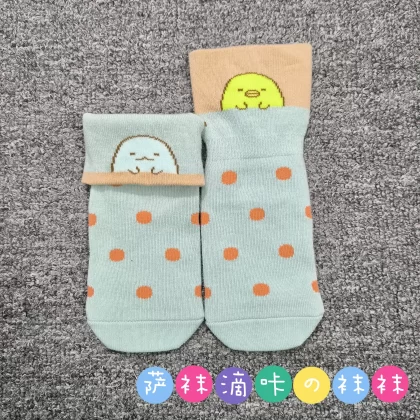 Japanese single corner biological series children's socks with mid-length flaps, two-wear, three-dimensional cute cartoon big children's short socks with card