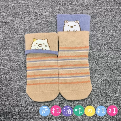 Daily single corner biological series children’s socks in the middle tube and two-piece with card three-dimensional cute cartoon big children’s short socks