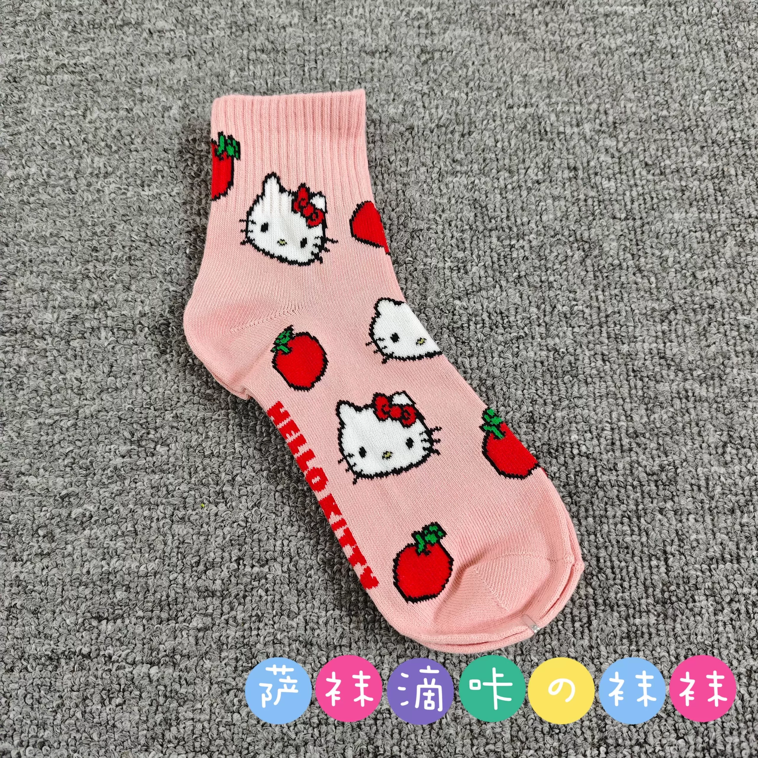 | nameOriginal | Japanese single Hello Kitty series full printed lines strawberry bow cartoon female adult short tube medium tube socks |