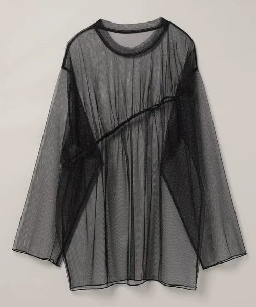 | nameOriginal | Japanese single spring and summer new style JS gathered round neck see-through blouse, layered jacket, long-sleeved T-shirt, tulle pullover |
