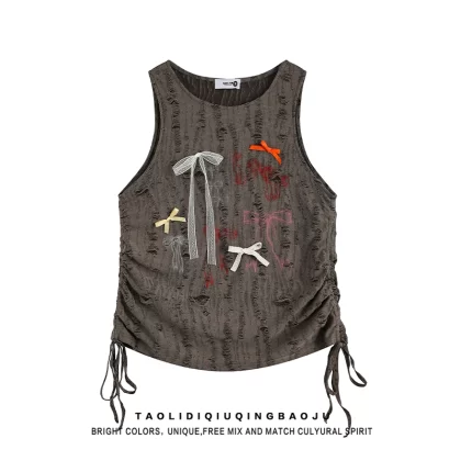 Japanese sleeveless vest loose niche three-dimensional bow