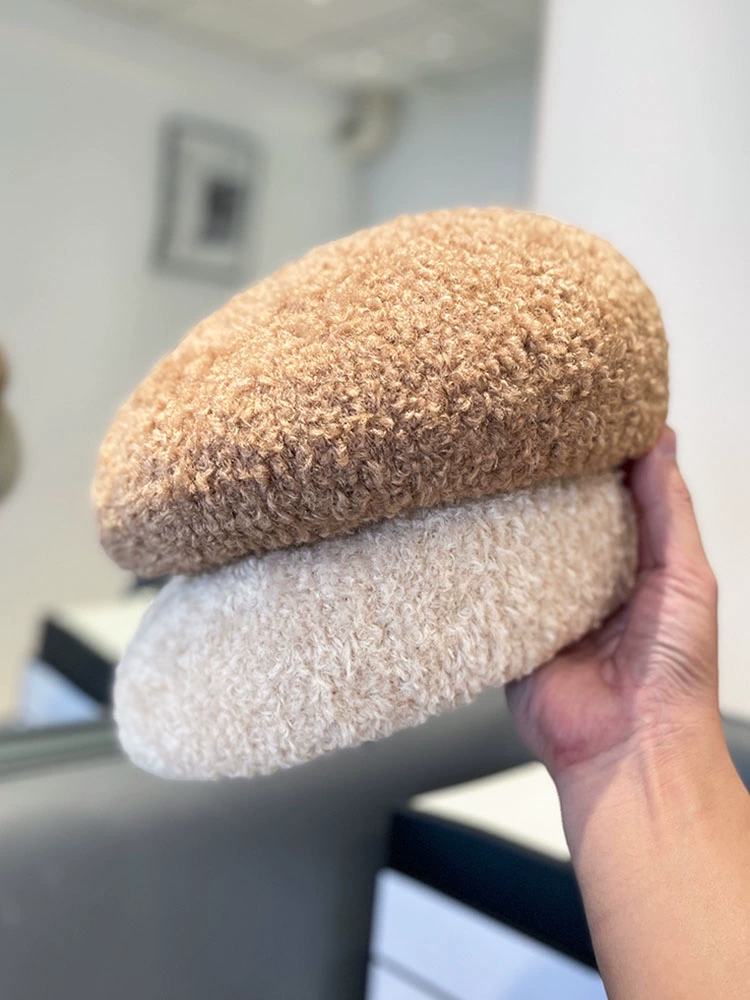 Japanese solid color lamb wool beret hat for women in autumn and winter, elegant and versatile painter hat, internet celebrity face-showing small pumpkin hat