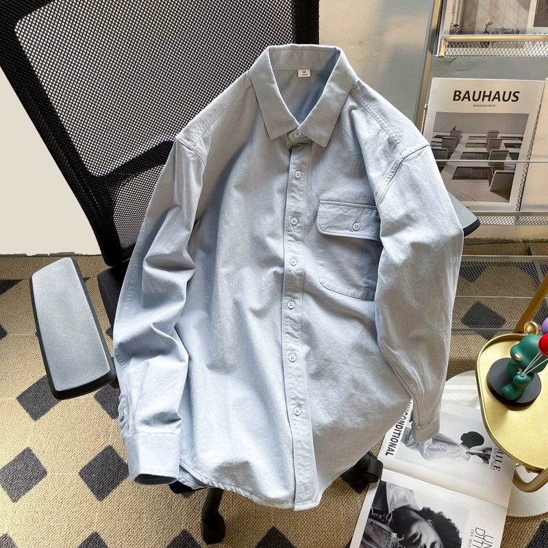 | nameOriginal | Japanese solid color shirts for men and women, high-end spring and summer outer wear, handsome bottoming, long-sleeved shirt lapel ins |
