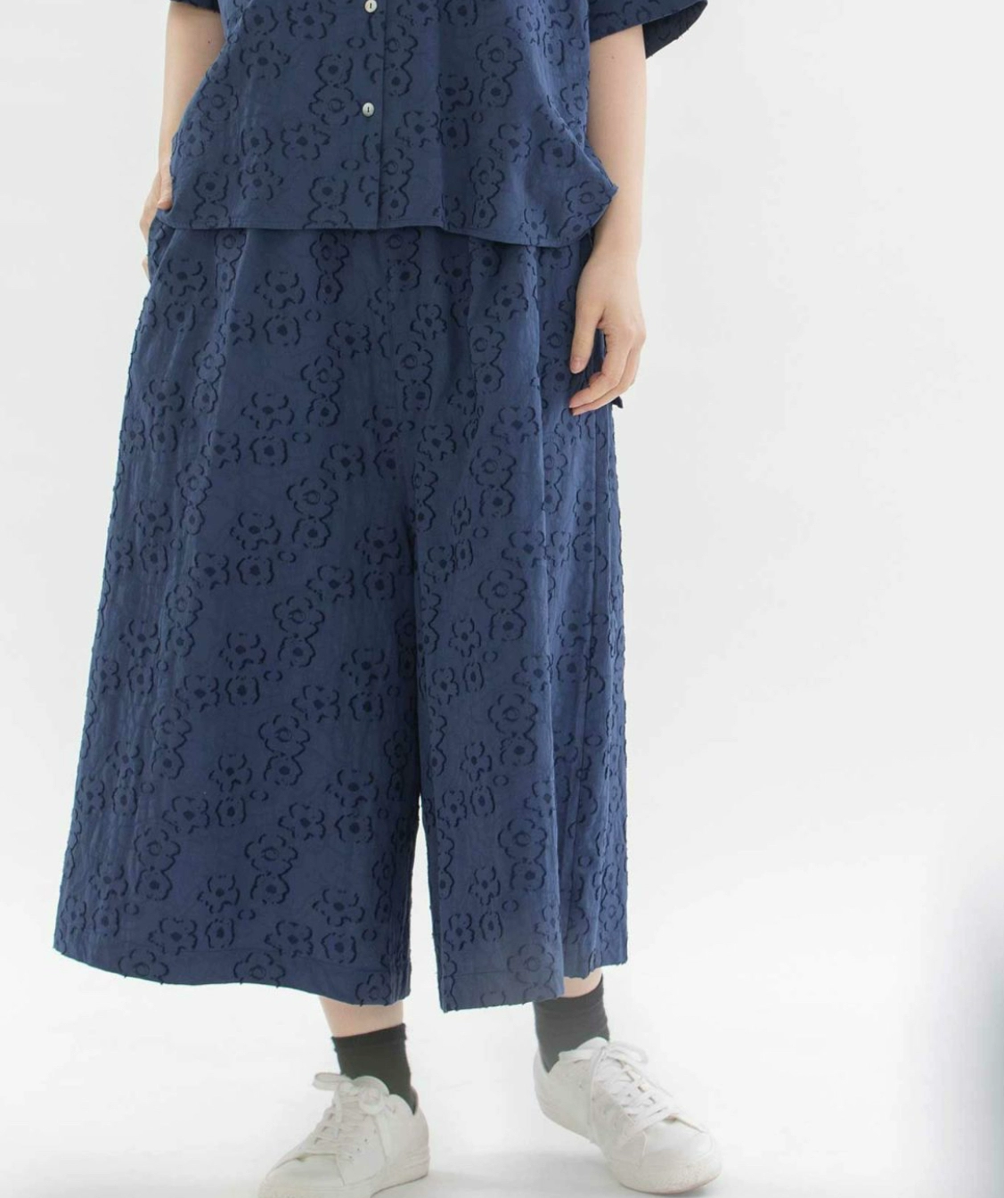 Japanese solid color simple, comfortable and versatile elastic waist culottes