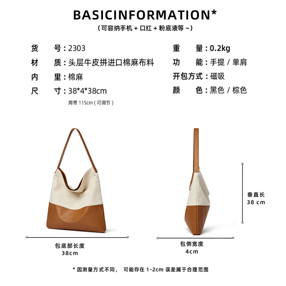 | nameOriginal | Japanese-style Colored Cowhide Patchwork Canvas Bag Casual Lazy Style Underarm Shoulder Bag Large Bag Women's Large Capacity Tote Bag |