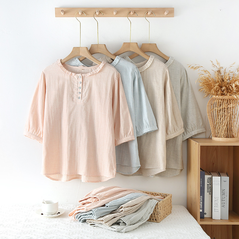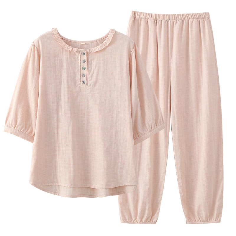 | nameOriginal | Japanese Style Comfortable Pure Cotton Summer Thin Pullover Women's Half Sleeve Pajamas Simple Outer Wearing Cropped Pants Home Clothes |