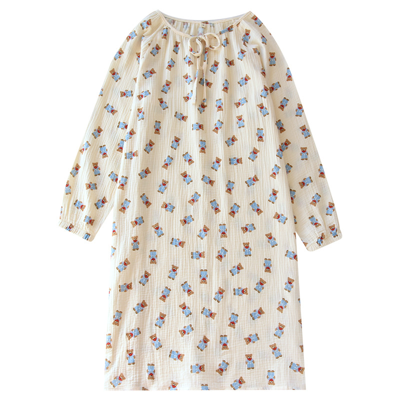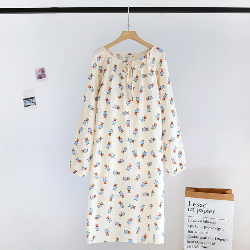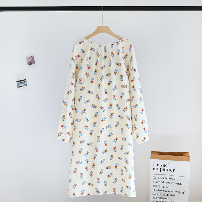 | nameOriginal | Japanese Style Cute Cartoon Cotton Crepe Nightdress Spring and Summer Fresh Long-Sleeved Double-Layer Gauze Loose Home Clothes Pajamas |