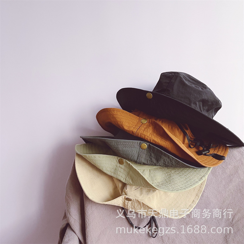 | nameOriginal | Japanese Style Dark Style Children's Fisherman Hat Copper Buckle Flanging Boys' and Girls' Travel Windproof Sunshade Pot Hat |