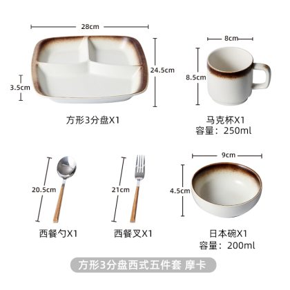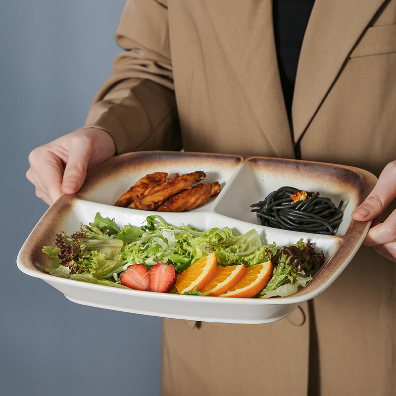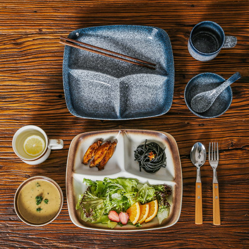 | nameOriginal | Japanese-style Fat-reducing Dividing Plate Household Ceramic Tableware Tray One-person Breakfast Separated Fruit Plate Canteen |