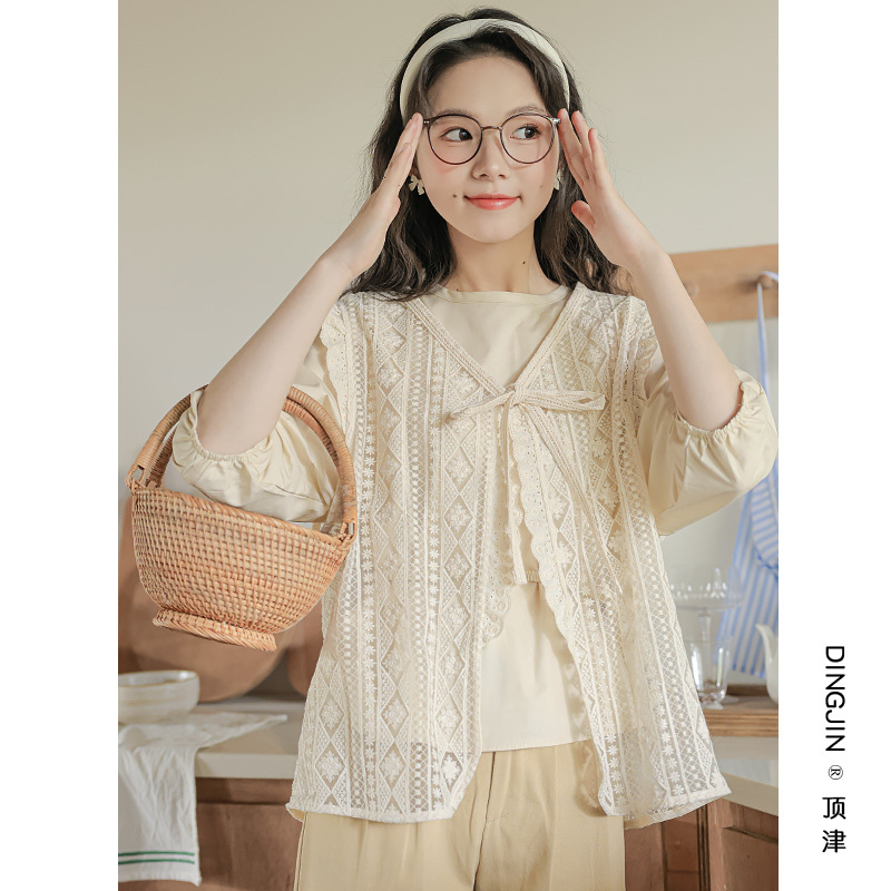 Japanese Style Hollow Lace Vest Women's Summer Thin 2024 New Arrival Small French Style Retro Sleeveless Top