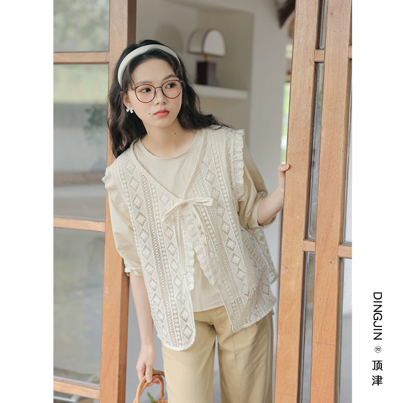 Japanese Style Hollow Lace Vest Women’s Summer Thin 2024 New Arrival Small French Style Retro Sleeveless Top