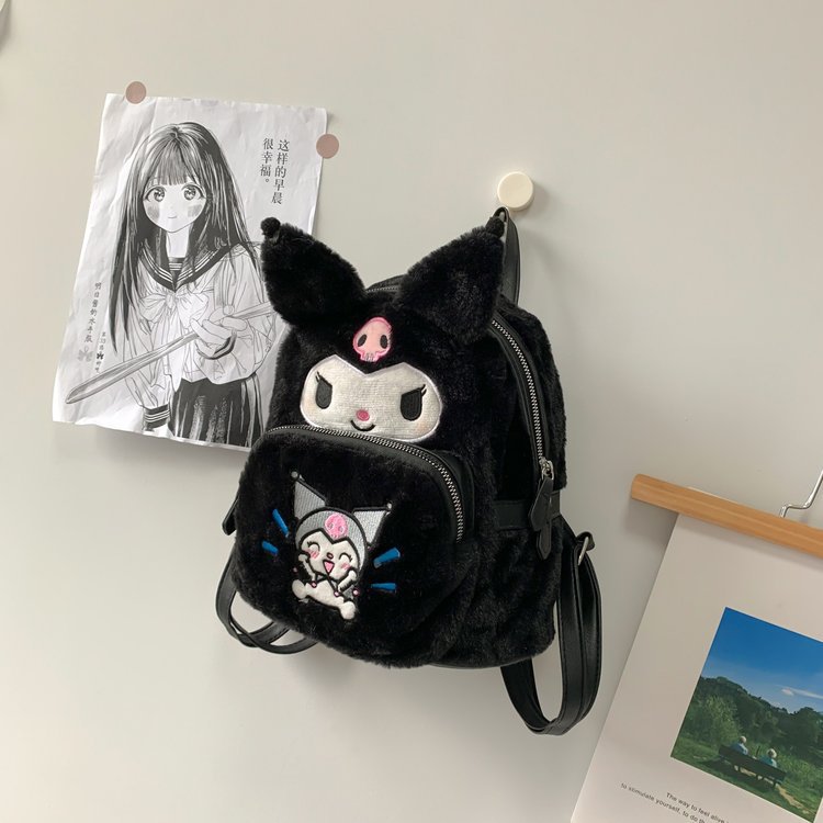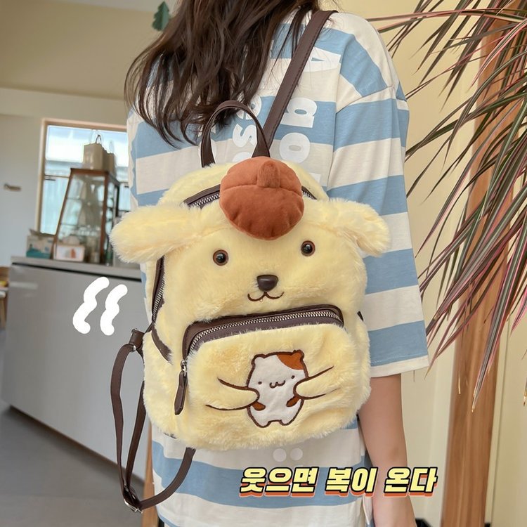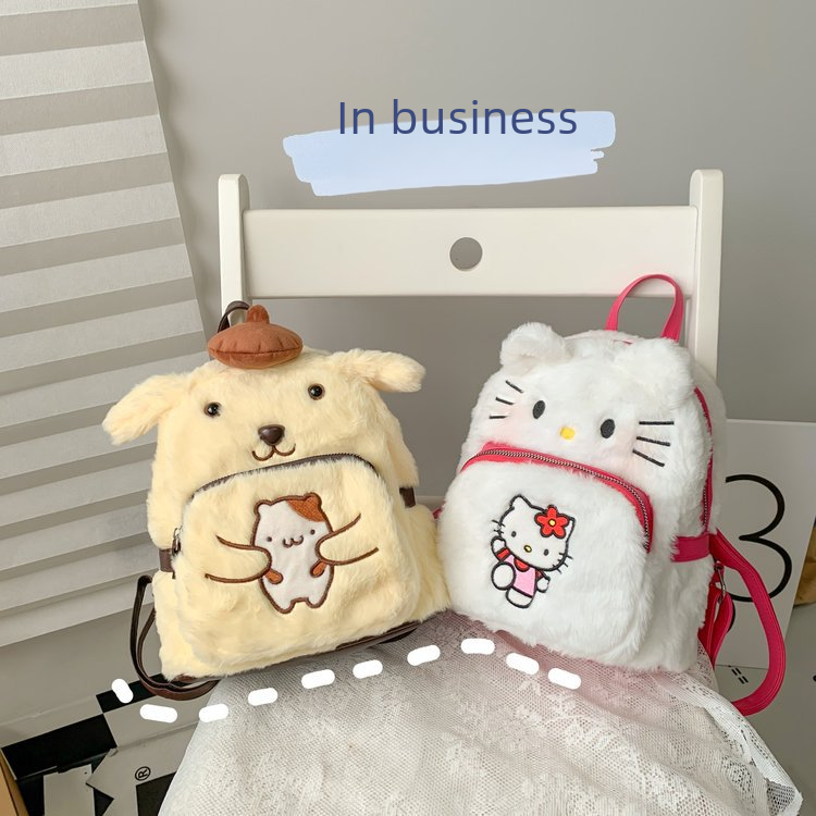 Japanese Style ins Cute Furry Pudding Dog Backpack 2023 New Style Girl's Street Backpack Cartoon Plush Bag