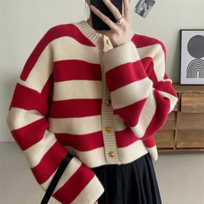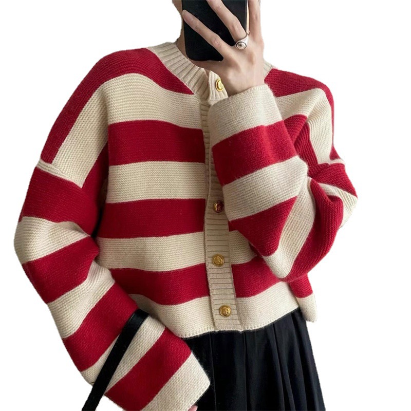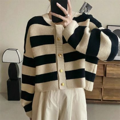 | nameOriginal | Japanese Style Lazy Gentle Style Striped Knitted Cardigan 2023 Autumn and Winter New Round Neck Colorblock Loose Sweater Women's Coat |