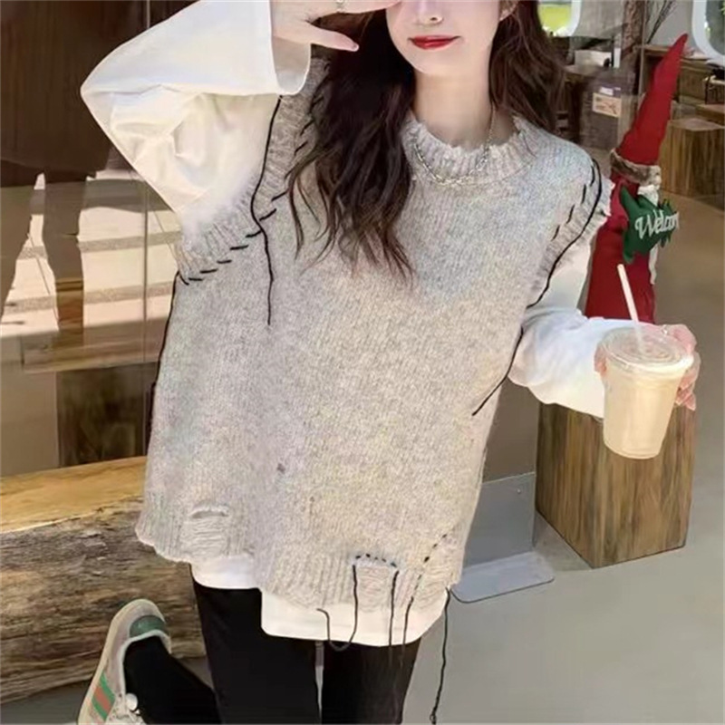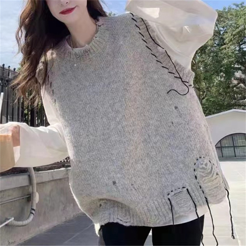 | nameOriginal | Japanese Style Lazy Style Wool Sweater Ripped Vest Knitted Vest Internet Popular Fashion Western Style Autumn and Winter 2024 New |