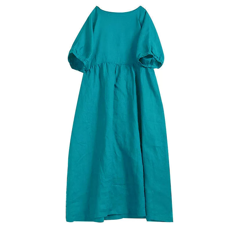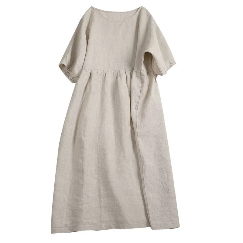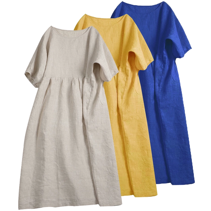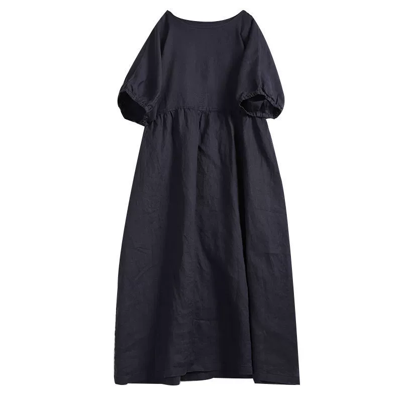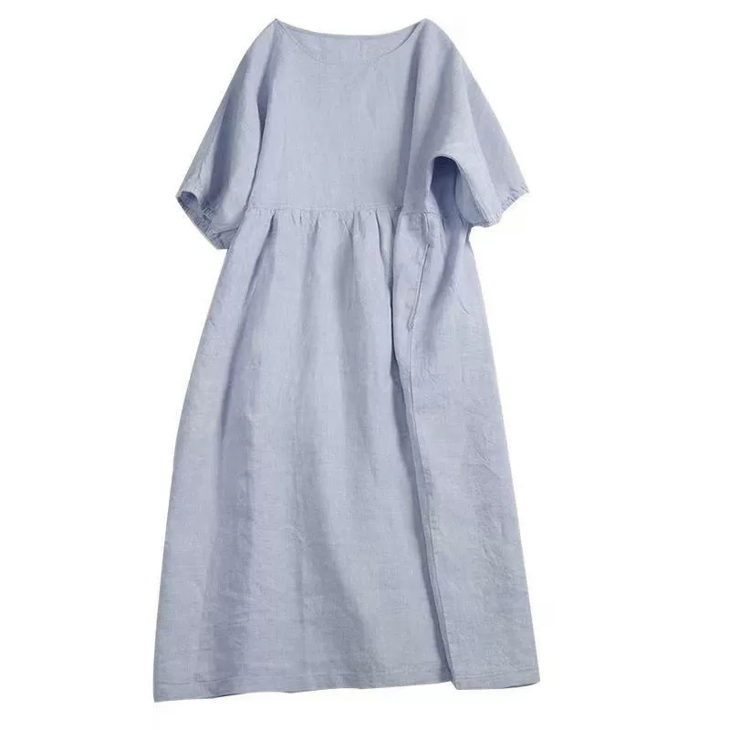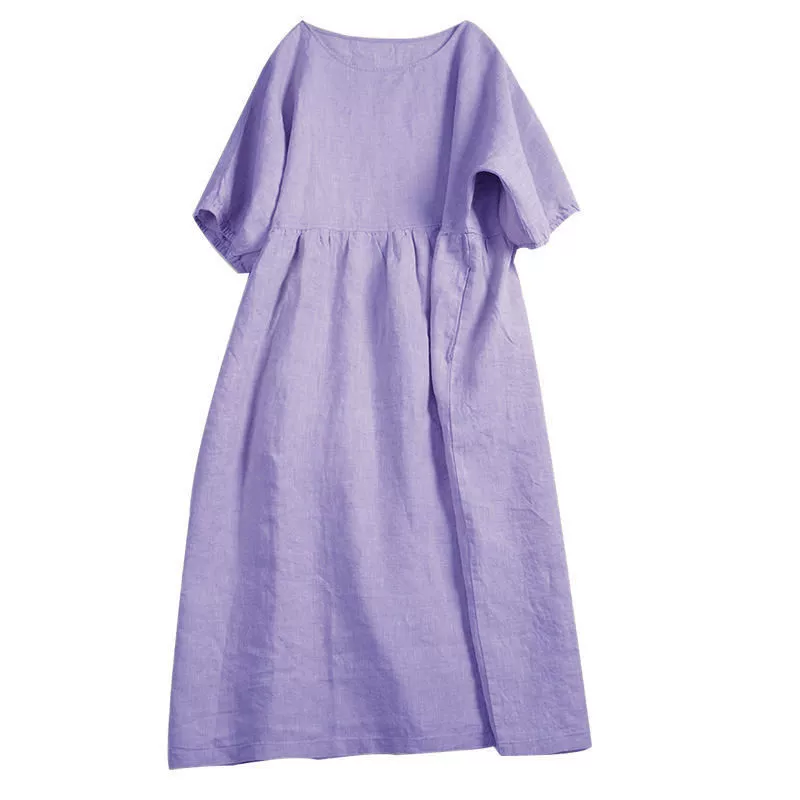 | nameOriginal | Japanese style Mori girl cotton and linen dress women's short-sleeved summer purple loose mid-length solid color linen doll skirt |