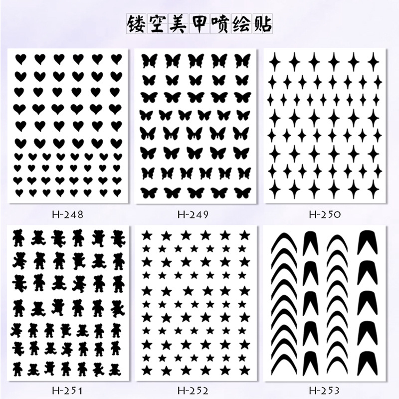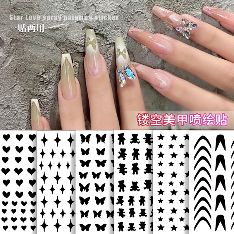 | nameOriginal | Japanese-style nail art spray-painted stickers Internet-famous new hollow love butterfly bear stars French template nail decals |
