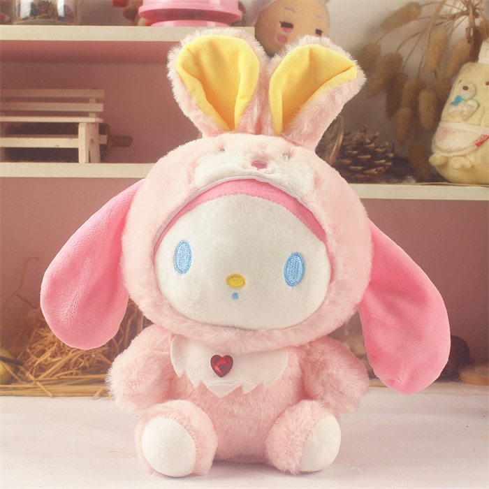| nameOriginal | Japanese style new cinnamon dog panda dress up rainbow rendering plush doll big eared dog small white dog rag doll doll |