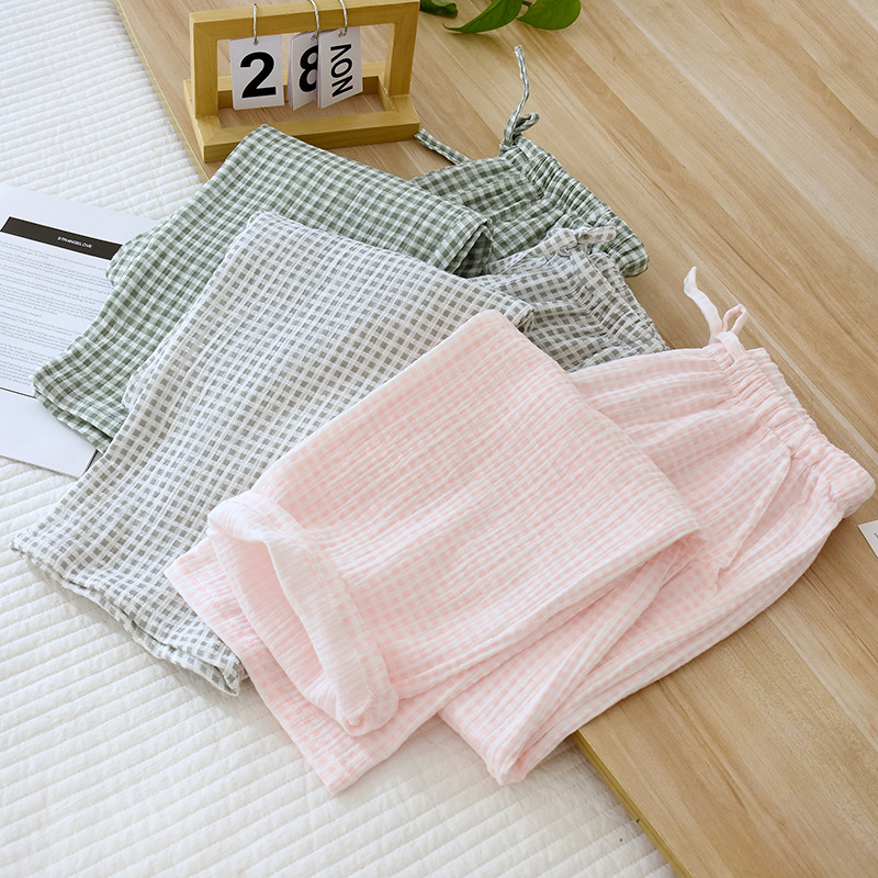 | nameOriginal | Japanese-style Pajama Pants Cotton Double-layer Gauze Small Plaid Loose Girls Pajamas Home Clothes Pants Spring and Summer Thin Large Size |