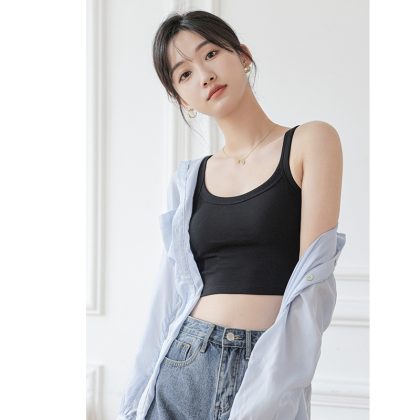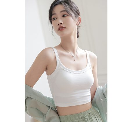| nameOriginal | Japanese Style Pure Cotton Beautiful Back Camisole Vest Women's Summer Outer Wear Thin Underwear with Chest Pad Base Inner Top Tube Top White |