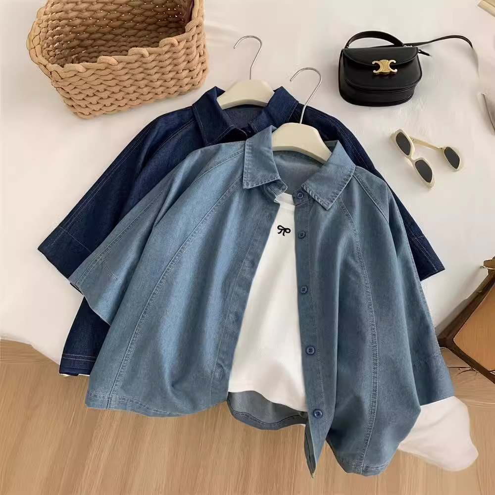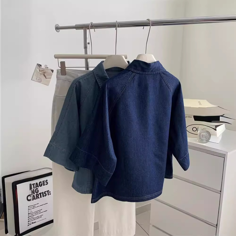 | nameOriginal | Japanese Style Retro Raglan Sleeve Laps Denim Short Sleeve Shirt Jacket Women's Summer Loose Casual Design Half Sleeve Top |